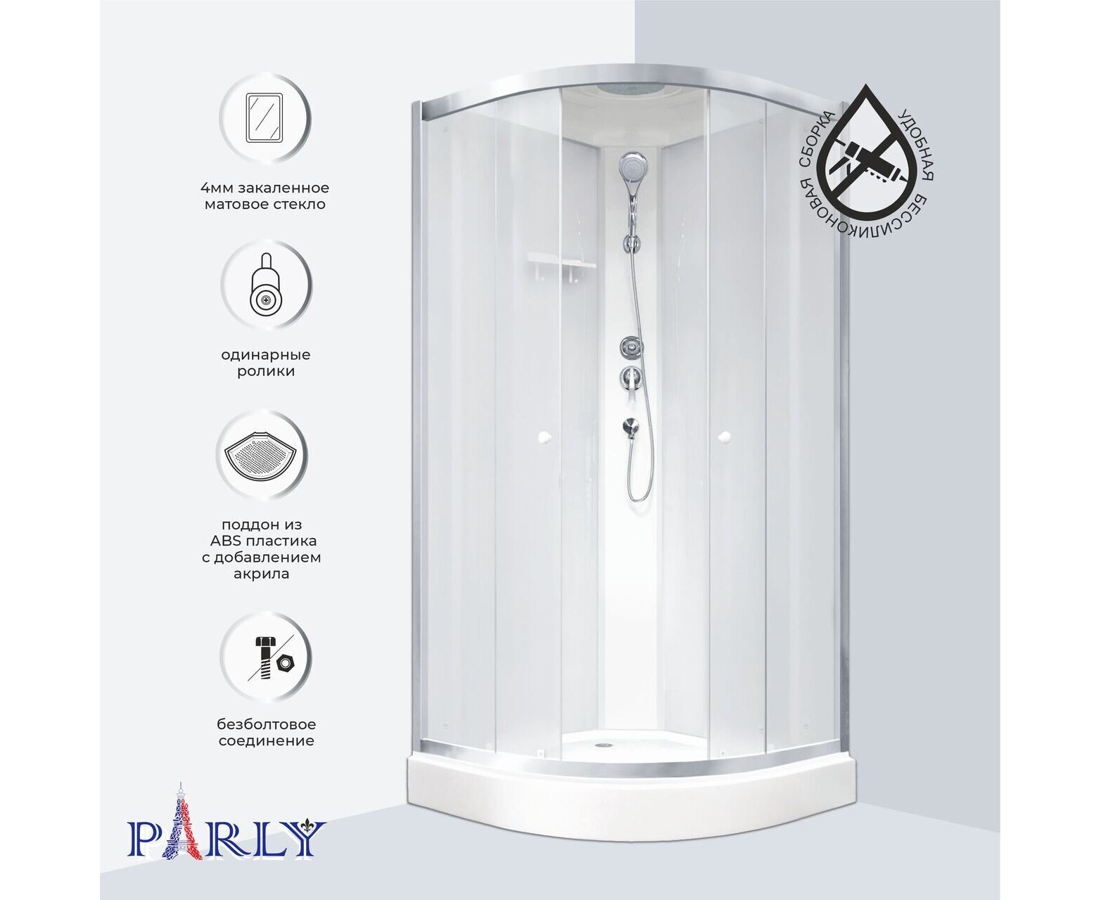 - Современный дизайн. Модельный ряд кабин PARLY представлен в различных стилях, конфигурациях и цветах, а также с различными формами поддонов. Поэтому можно индивидуально подобрать кабину практически для любого дизайнерского решения. Презентабельный вид кабинам придают закаленные стекла, которые способствуют надежности и не боятся химических средств, что позволяет дольше сохранить их внешнюю привлекательность.
