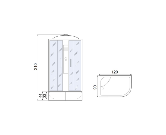Размеры (ш/г/в): 120х90х210Форма: асимметричнаяОриентация: леваяКрыша: естьВид поддона: высокийГидромассаж: нетЭлектрика: нетБаня: нетТолщина полотна двери, мм: 4Исполнение полотна двери: матовоеЦвет профиля: хром матовыйКонструкция дверей: раздвижнаяСтрана: Россия