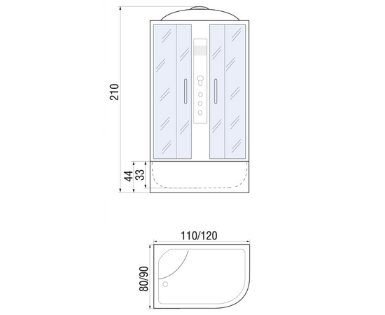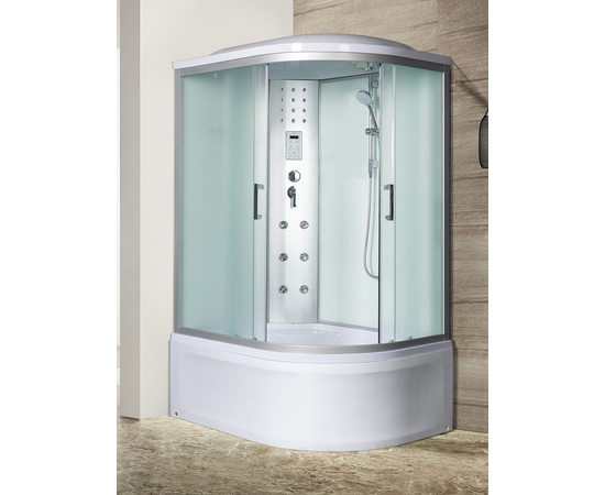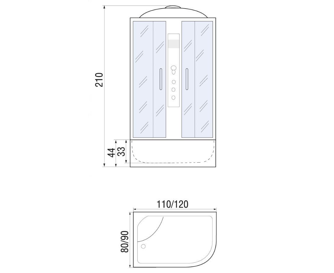 Размеры (ш/г/в): 120х80х210Форма: асимметричнаяОриентация: леваяКрыша: естьВид поддона: высокийГидромассаж: естьЭлектрика: естьБаня: нетТолщина полотна двери, мм: 4Исполнение полотна двери: матовоеЦвет профиля: хром матовыйКонструкция дверей: раздвижнаяСтрана: Россия