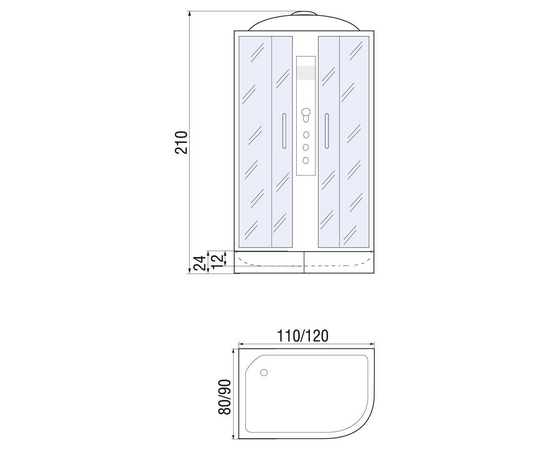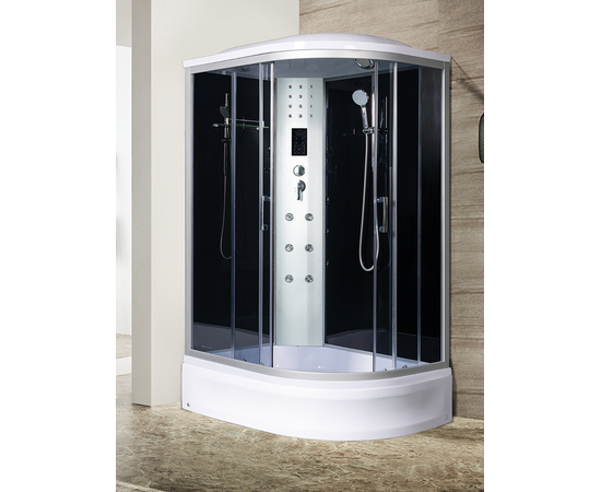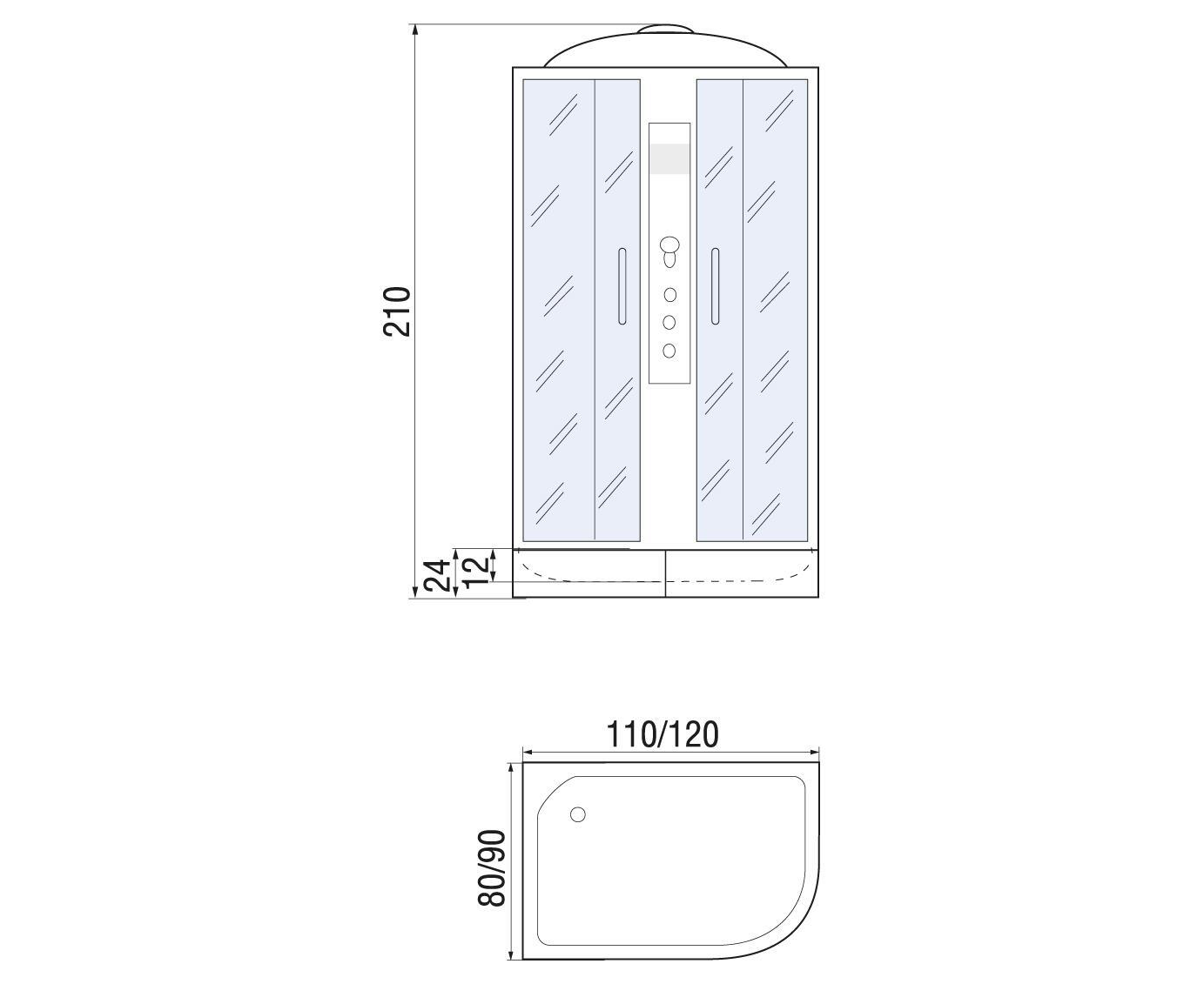Размеры (ш/г/в): 120х90х210Форма: асимметричнаяОриентация: леваяКрыша: естьВид поддона: среднийГидромассаж: естьЭлектрика: естьБаня: нетТолщина полотна двери, мм: 4Исполнение полотна двери: тонированноеЦвет профиля: хром матовыйКонструкция дверей: раздвижнаяСтрана: Россия