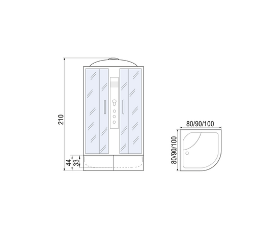 БрендRiver Код товара31815 Ширина, см90 Глубина, см90 Высота, см210 ФормаЧетверть круга ОриентацияУниверсальная Вид поддонаВысокий