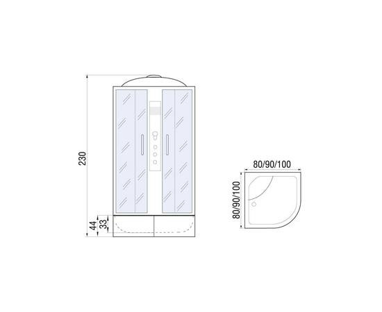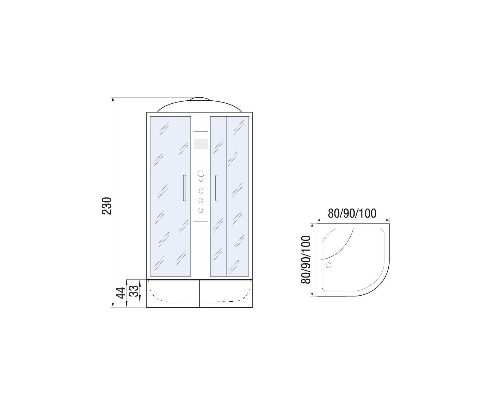 БрендRiver Ширина, см90 Глубина, см90 Высота, см230 ФормаЧетверть круга ОриентацияУниверсальная Вид поддонаВысокий