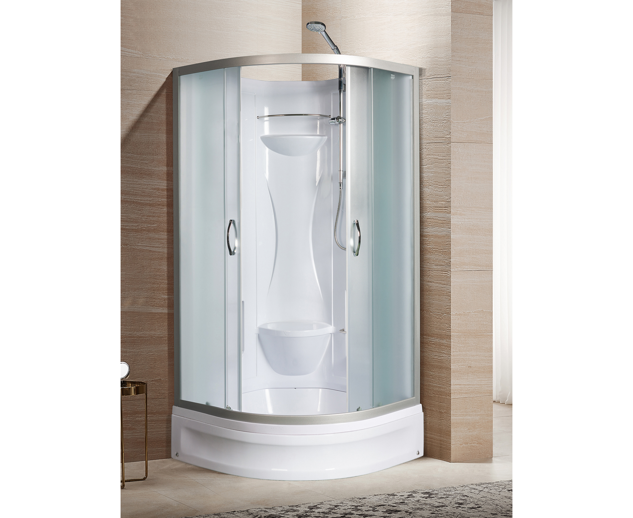 Душевая кабина River Rein 90/24 без крыши от производителя River отличное решение для Вашей ванной комнаты. Кабина открытого типа, габаритные размеры 90x90x190. Поддон средний. Матовое стекло толщиной 4 мм в хромированном алюминиевом профиле не только эффектно смотрится, но и практично в эксплуатации. Раздвижные двери открываются бесшумно и не заедают. Кабина оснащена всем необходимым для приема душа: встроенное сиденье, сифон, полочка, передний съемный экран, душевой гарнитур.