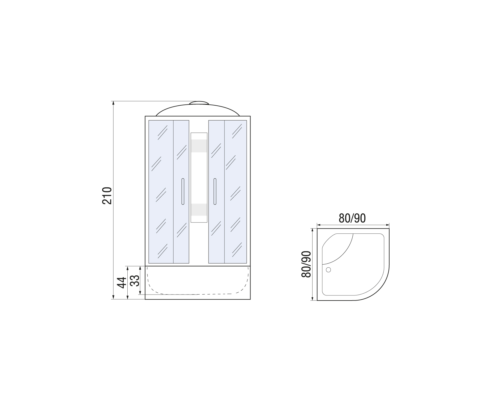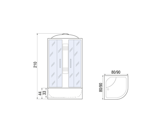 БрендRiver Код товара31827 Ширина, см90 Глубина, см90 Высота, см210 ФормаЧетверть круга ОриентацияУниверсальная Вид поддонаВысокий