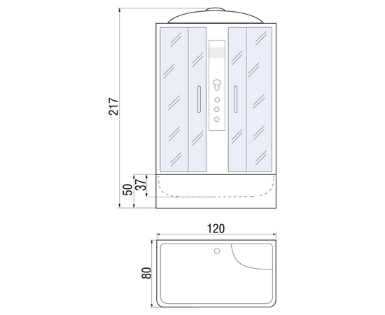 БрендRiver Код товара31776 Ширина, см120 Глубина, см80 Высота, см217 ФормаПрямоугольная ОриентацияУниверсальная Вид поддонаВысокий