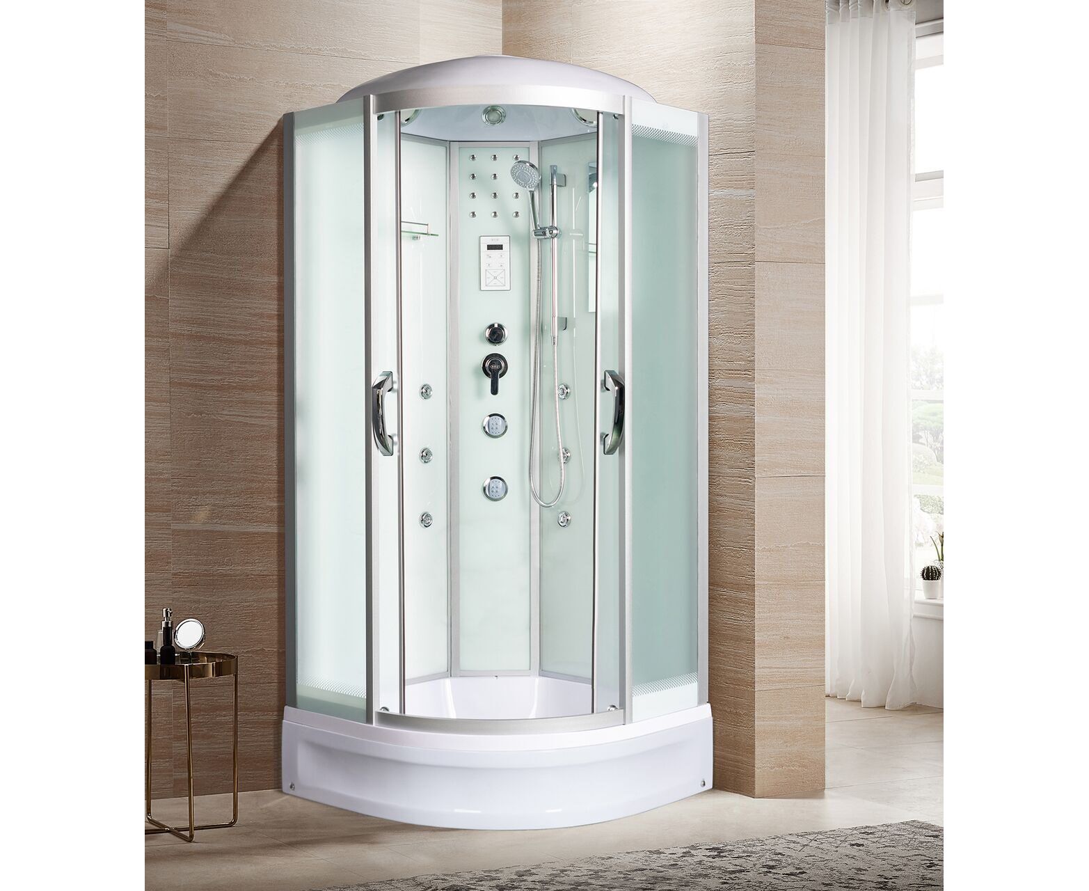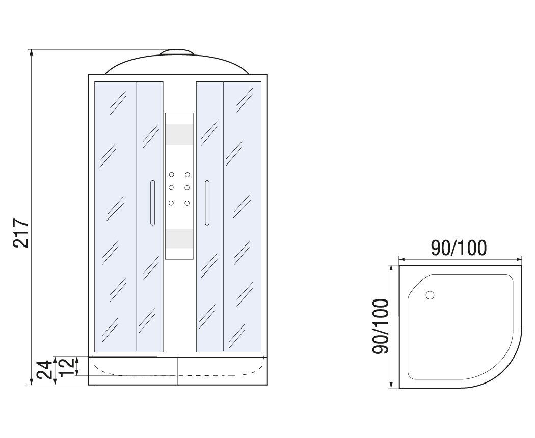 Душевая кабина River Temza 90/24 MT от производителя River отличное решение для Вашей ванной комнаты. Кабина закрытого типа, габаритные размеры 90x90x217. Поддон средний. Матовое стекло толщиной 4 мм в хромированном алюминиевом профиле не только эффектно смотрится, но и практично в эксплуатации. Раздвижные двери открываются бесшумно и не заедают. Кабина оснащена всем необходимым для приема душа: встроенное сиденье, сифон, полочка, зеркало, сенсорный пульт управления, передний съемный экран, душевой гарнитур, тропический (верхний) душ, вентиляция, радио, подключение к аудио, телефон (громкая связь).