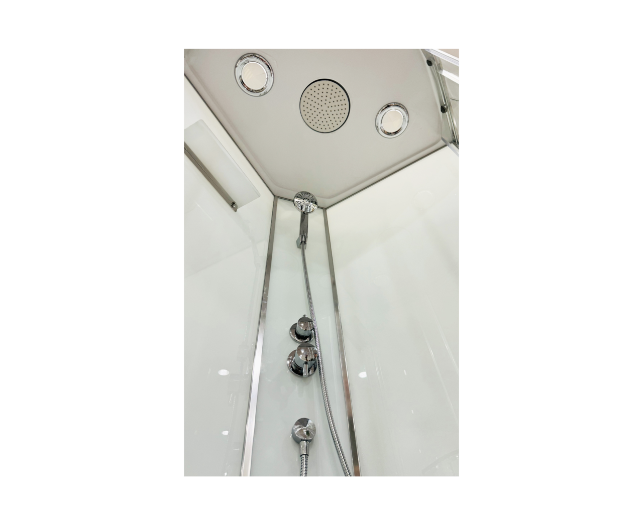 Антискользящее покрытие: есть. Диаметр слива, см: 5. Управление: ручное. Гидромассаж в кабине: нет. Материал полотна двери: стекло. Исполнение полотна двери: рифленое. Вход: спереди. Ширина входа, см: 58. Конструкция дверей: раздвижная. Количество секций двери: 2. Толщина полотна двери, мм: 5. Исполнение задней стенки: стекло. Цвет задней стенки: белый. Цвет корпуса: белый. Материал профиля: алюминий. Цвет профиля: хромированный. Электропитание: нет. Наличие крыши: есть. Освещение: нет. Тропический душ: есть. Турецкая баня: нет.