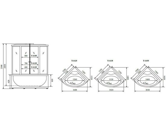 БрендTimo Код товара32221 Ширина, см120 Глубина, см120 Высота, см230 ФормаЧетверть круга ОриентацияУниверсальная Вид поддонаВанна