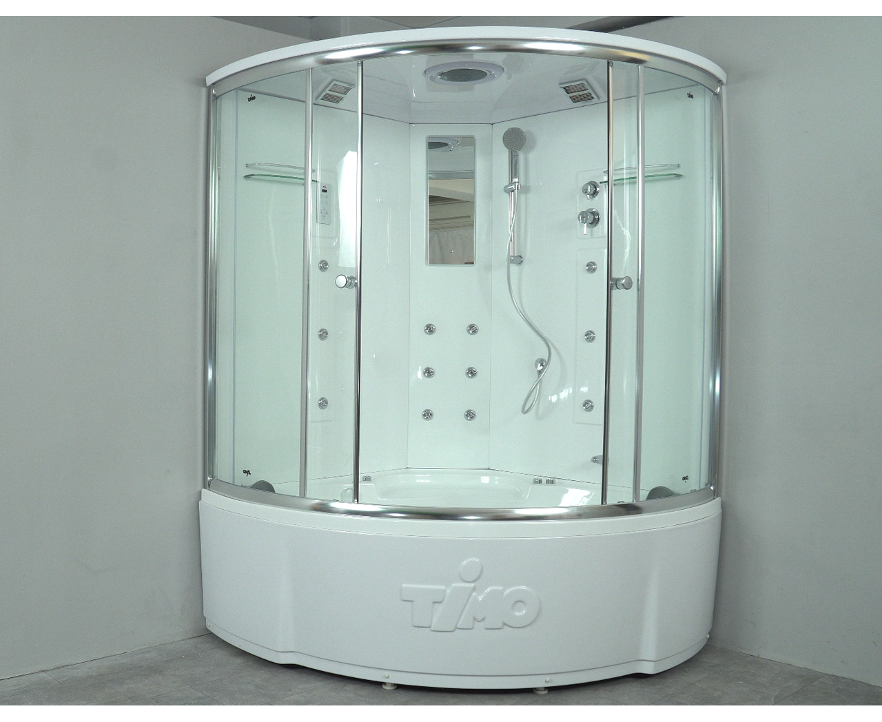 Душевые кабины Timo LUX - минимум стекла и максимум акриловых поверхностей. Такое конструктивное решение несет в себе ряд преимуществ: позволяет осуществлять быстрый и легкий уход за душевой кабиной, являются эталоном надежности, долговечности, удобства и безопасности. Поддон: акрил армирован стекловолокном на усиленном каркасе. Диаметр сифона 50 мм. Сливная система clik-clak.