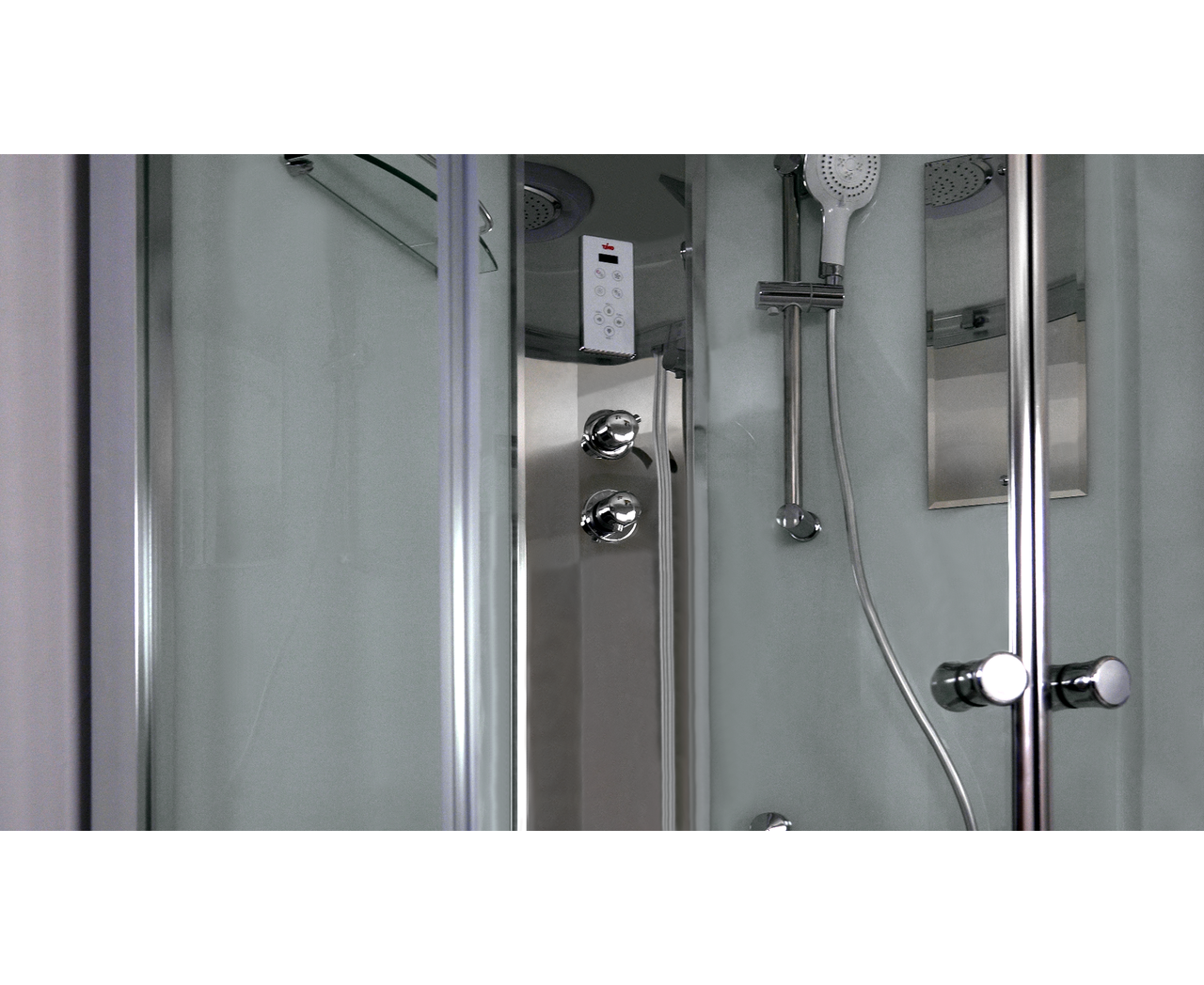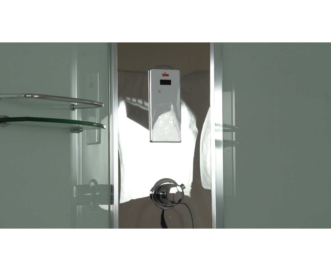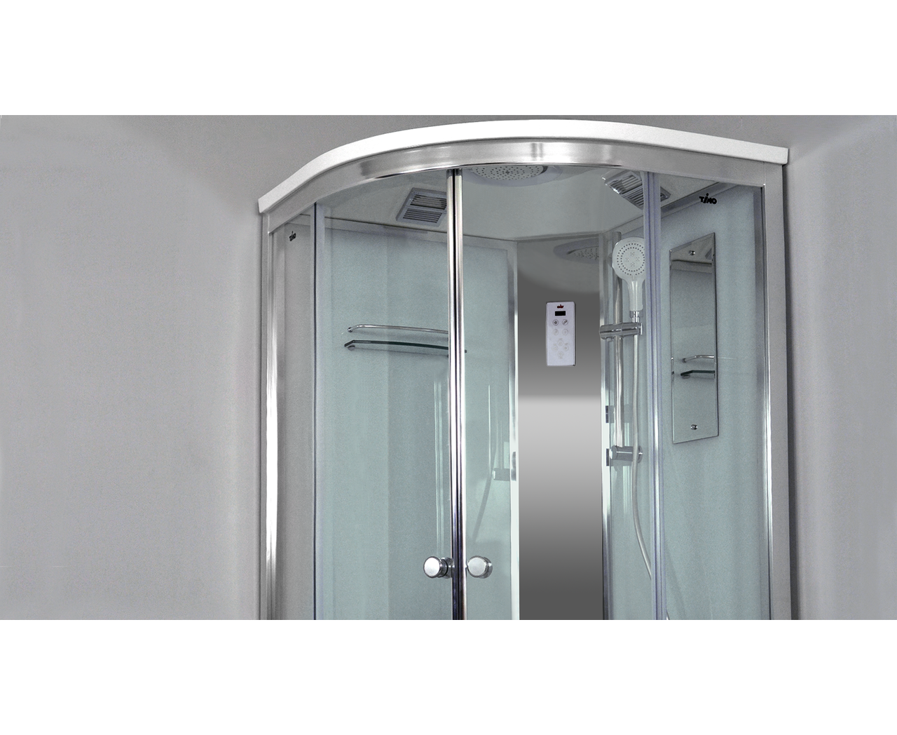 Стильная душевая кабина Timo Comfort T-8880 C сочетает в себе высокую функциональность, практичность и надежность. Для изготовления применяют безопасное закаленное стекло толщиной 6 мм, надежно фиксируемое алюминиевым профилем. Цвет профиля хром. В комплекте зеркало, сенсорный пульт управления, душевой гарнитур, сифон, полочки, тропический (верхний) душ, вентиляция, радио.