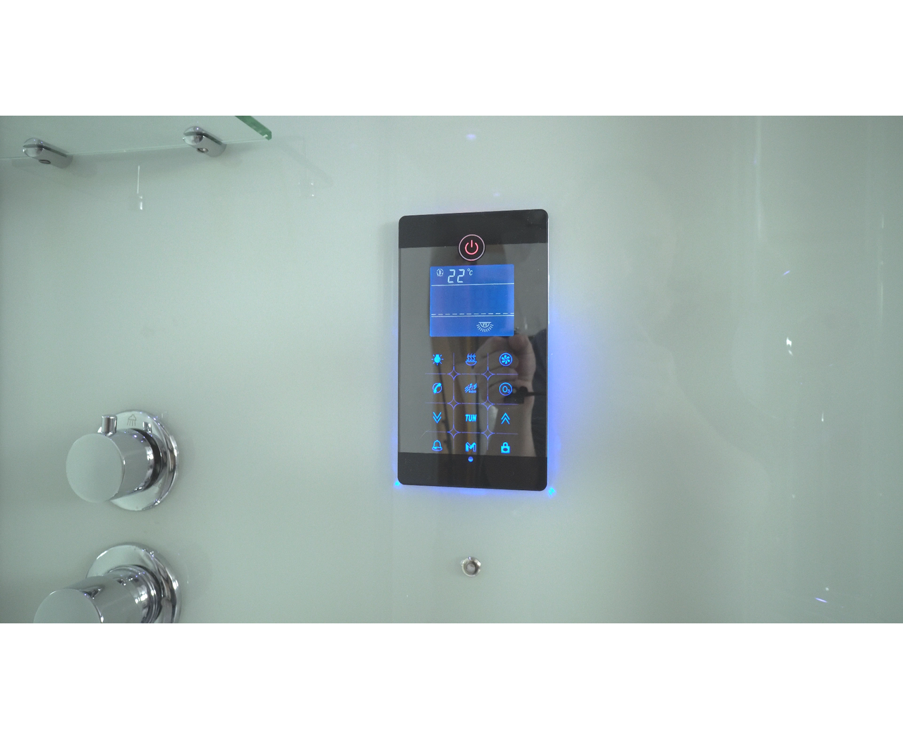 Комплектация: сенсорная панель управления, FM радио, подключение к СD, телефону; турецкая баня (хаммам), ионизация, хромотерапия; гидромассаж спины (6 джет);