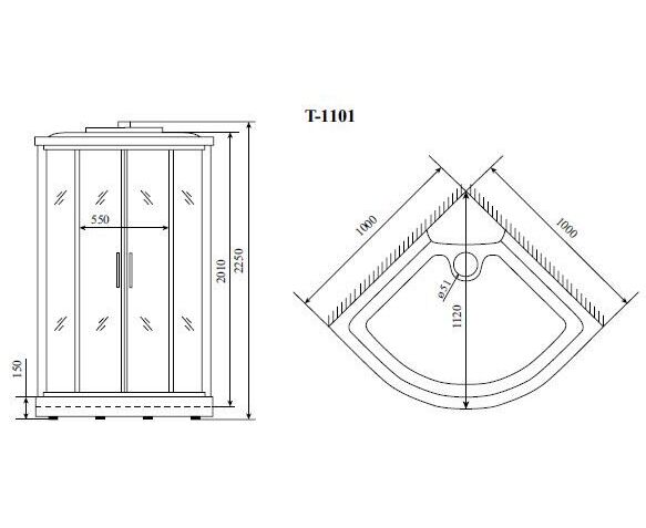 Регулируемая высота ножек: есть. Освещение: верхнее. Высота поддона: 15 см. Глубина поддона: 5 см.