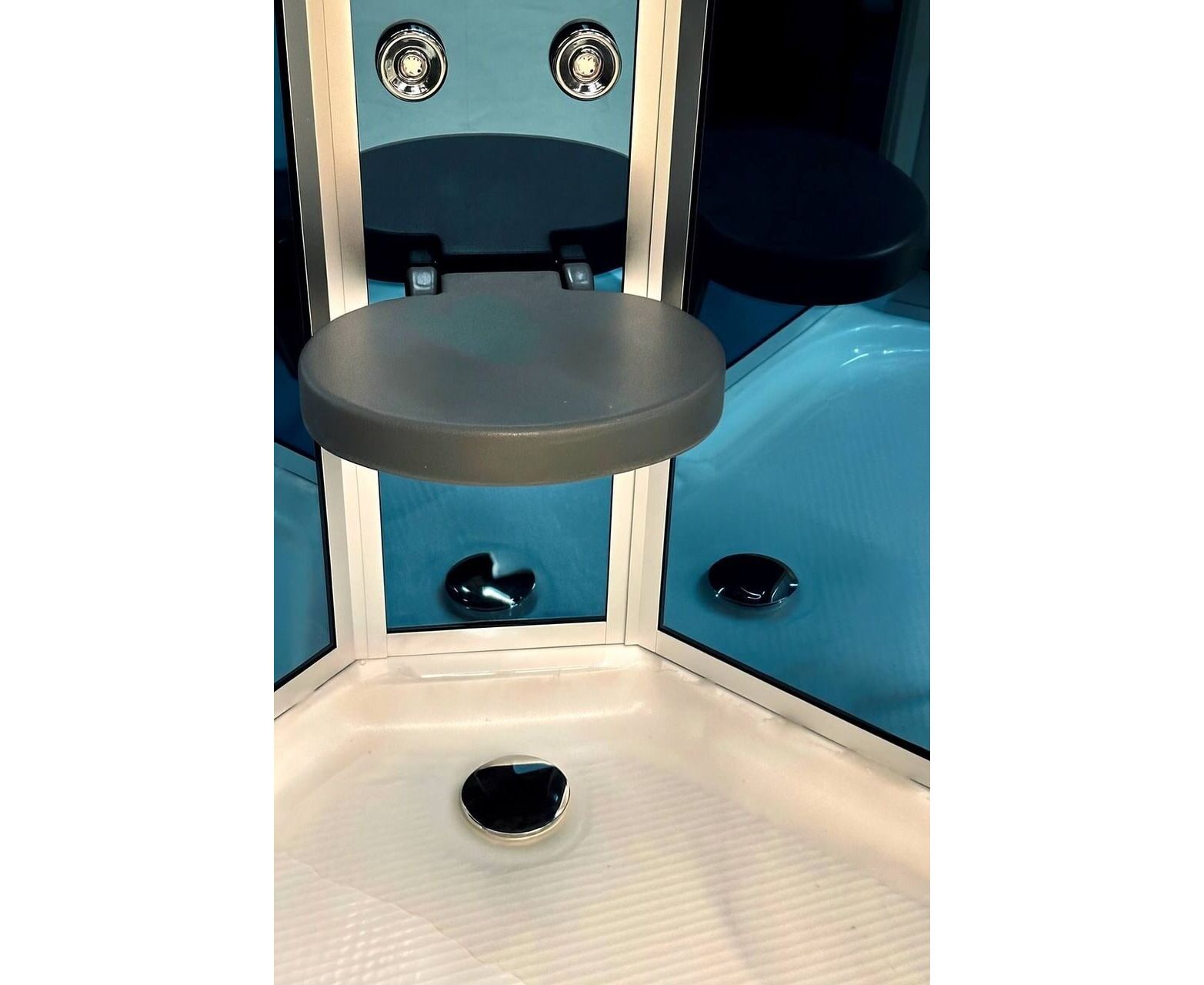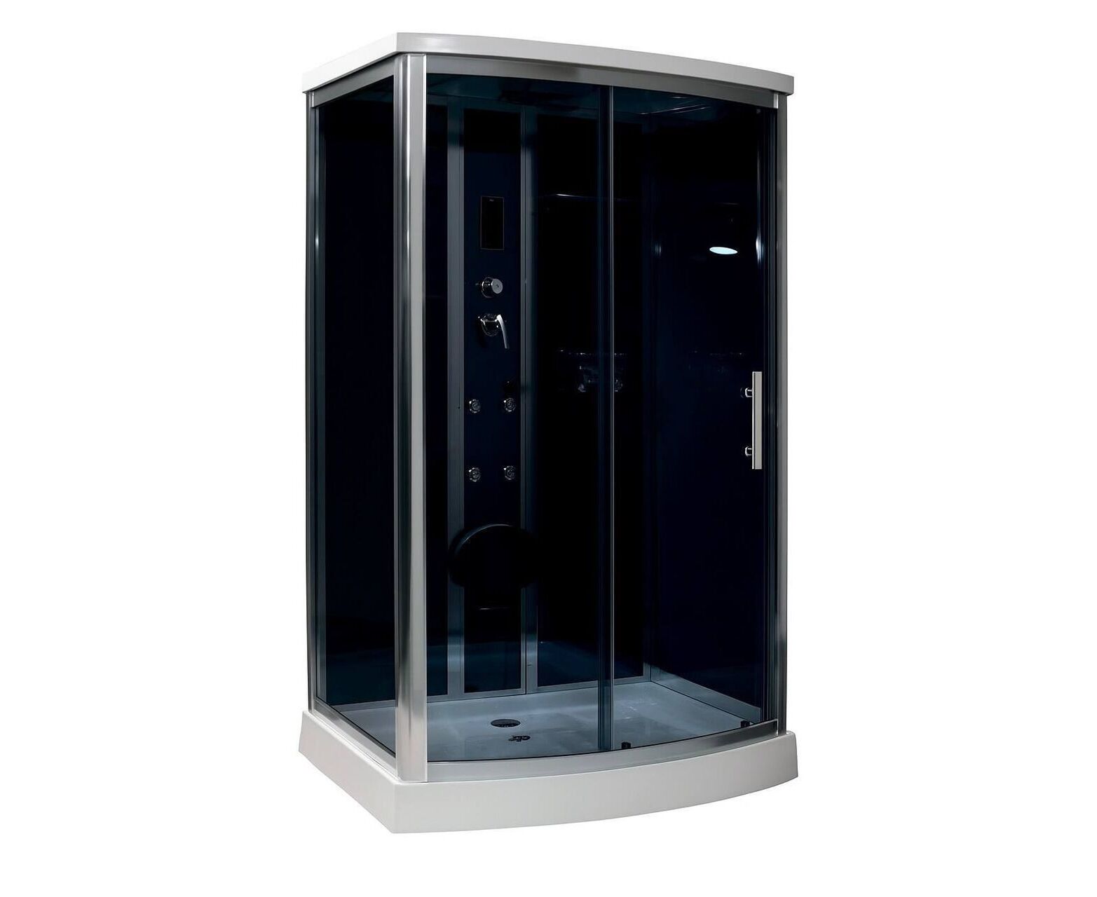 Душевые кабины Timo Standart - одна из первых серий, которая появилась на российском рынке сантехники. Даже по сей день, она вызывает устойчивый спрос и интерес среди покупателей благодаря примененному решению в дизайне: использовать в качестве задних стенок синее Стекло с зеркальным эффектом. Это позволяет применять холодные цвета в интерьере без ущерба визуального уменьшения пространства ванной комнаты. Стоит отметить, что коллекция Timo Standart включает в себя обширный ассортимент компактных душевых кабин и гидромассажных боксов самых больших размеров, отличающихся между собой функционалом. Поддон: акрил армирован стекловолокном на усиленном каркасе. Сливная система clik-clak. Съемный экран.