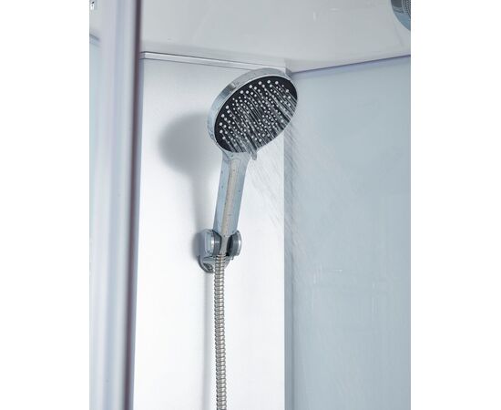 Верхний душ: есть. Зеркало: нет. Полки: есть. Регулируемая высота ножек: есть. Освещение: нет. Количество секций двери: 2. Материал полотна двери: матовое. Высота, см: 220. Ширина, см: 90. Глубина, см: 90. Ширина входа, см: 47. Материал поддона: акрил. Цвет профиля: хром. Материал профиля: алюминий. Исполнение задней стенки: стекло. Вентиляция: есть. Радио: нет. Подключение к аудио: нет. Встроенное сиденье: нет. Высота поддона, см: 15. Глубина поддона, см: 5. Толщина стекла, мм: 5. Ориентация: универсальная. Вес брутто, кг: 110. Вес, кг: 110. Для сифона диаметром, см: 4,5. Диаметр слива, см: 51