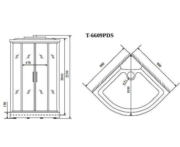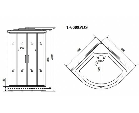 Характеристики Душевая кабина Timo T-6609 PDS 90х90х220