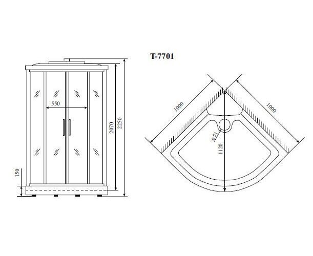 Регулируемая высота ножек: есть. Освещение: верхнее. Высота поддона: 15 см. Глубина поддона: 5 см.