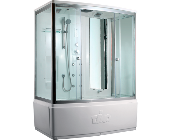Стильная душевая кабина Timo T-7750 NEW сочетает в себе высокую функциональность, практичность и надежность. Для изготовления применяют безопасное закаленное стекло толщиной 6 мм, надежно фиксируемое алюминиевым профилем. Цвет профиля хром. В комплекте встроенное сидение, слив-перелив, зеркало, подголовник, душевой гарнитур, сифон, полочки, тропический (верхний) душ, вентиляция, радио, излив.