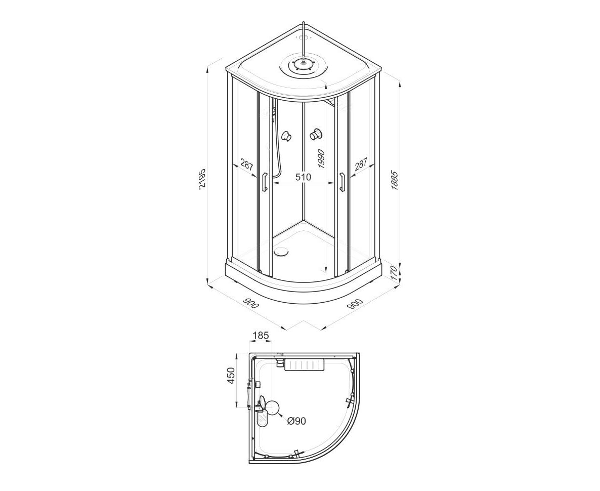 БрендTriton Ширина, см90 Глубина, см90 Высота, см220 ФормаЧетверть круга ОриентацияУниверсальная Вид поддонаНизкий Количество секций двери2 СтранаРоссия Гарантия5 лет
