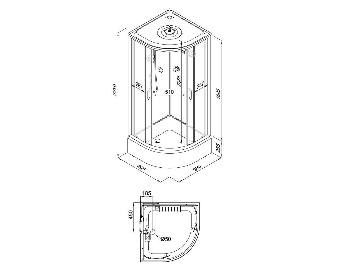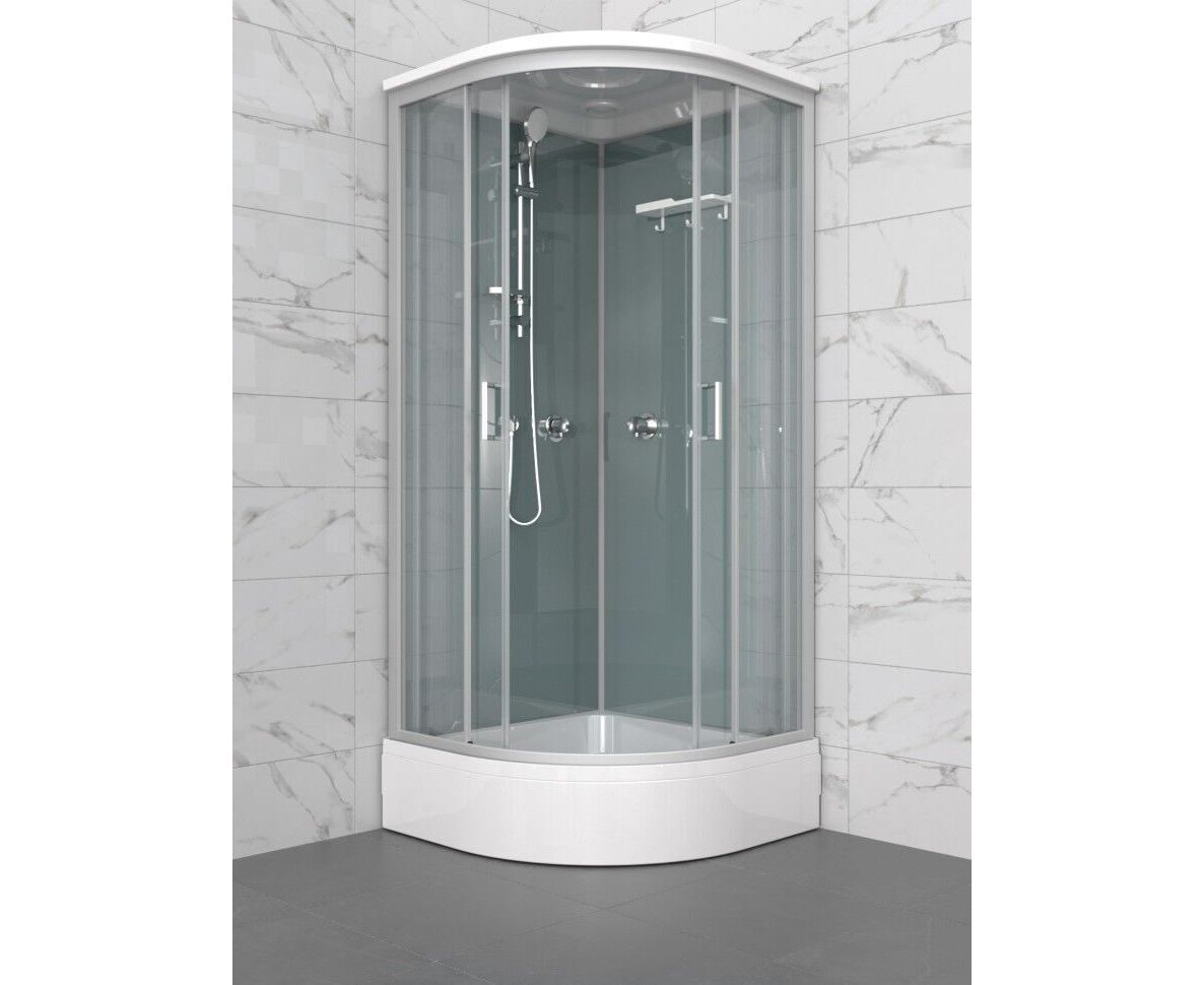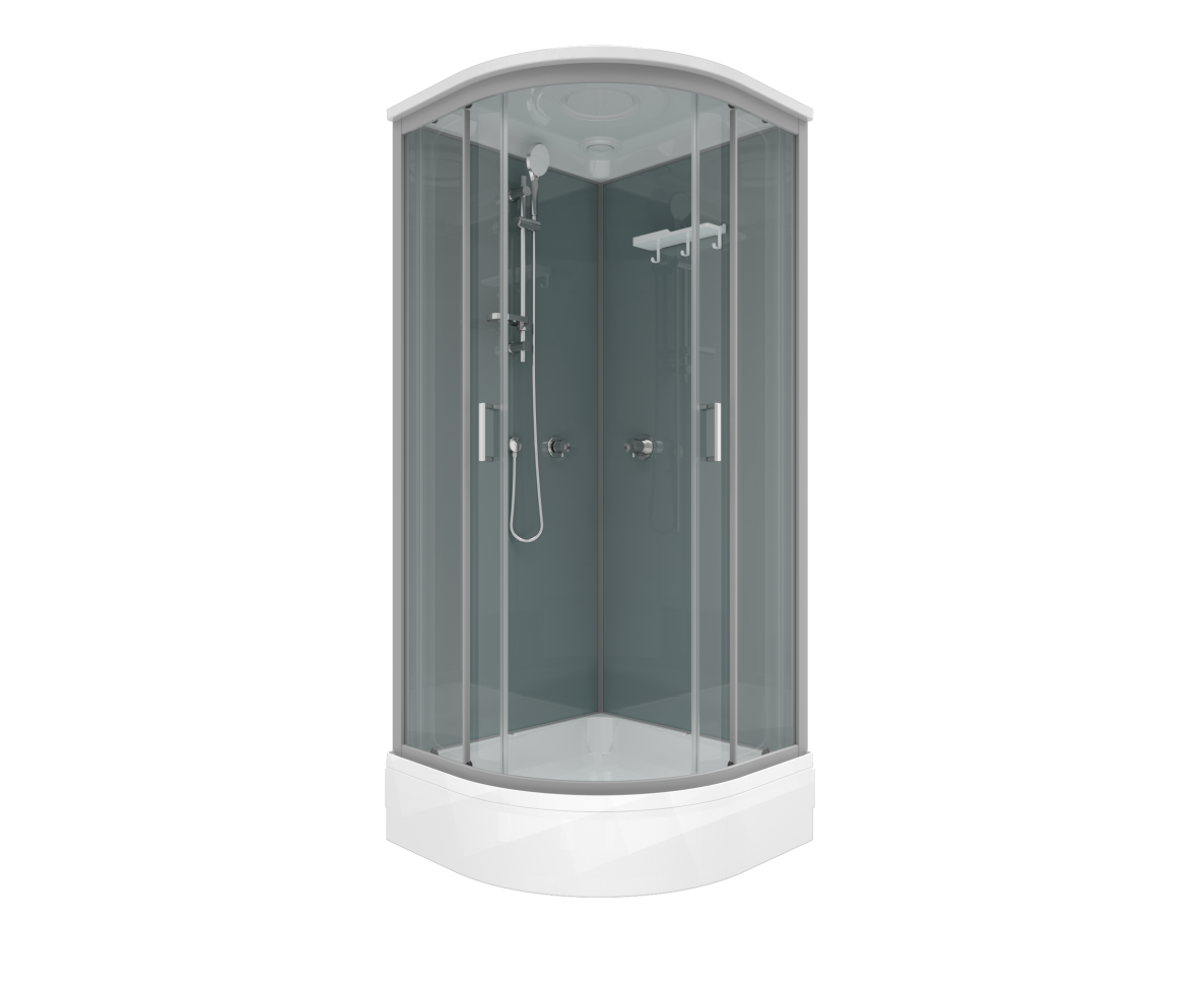 Triton Прайм-Сатин М3 - душевая кабина в форме полукруга (90х90х228 см). Средний поддон (высота 25,5 см, глубина 14,5 см) с сифоном 50 мм. Прозрачное закалённое стекло 4 мм, две раздвижные двери на роликах скольжения, ширина проёма 51 см. Алюминиевый профиль цвета сатин, радиус кабины - 556 мм. Максимальная нагрузка на поддон - 350 кг.