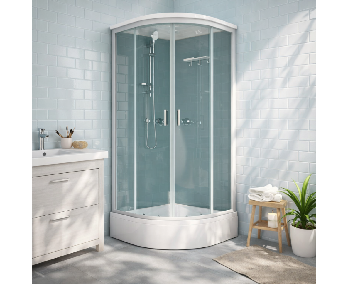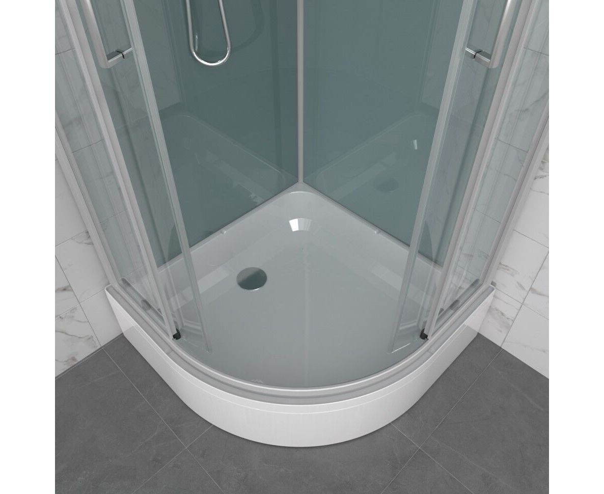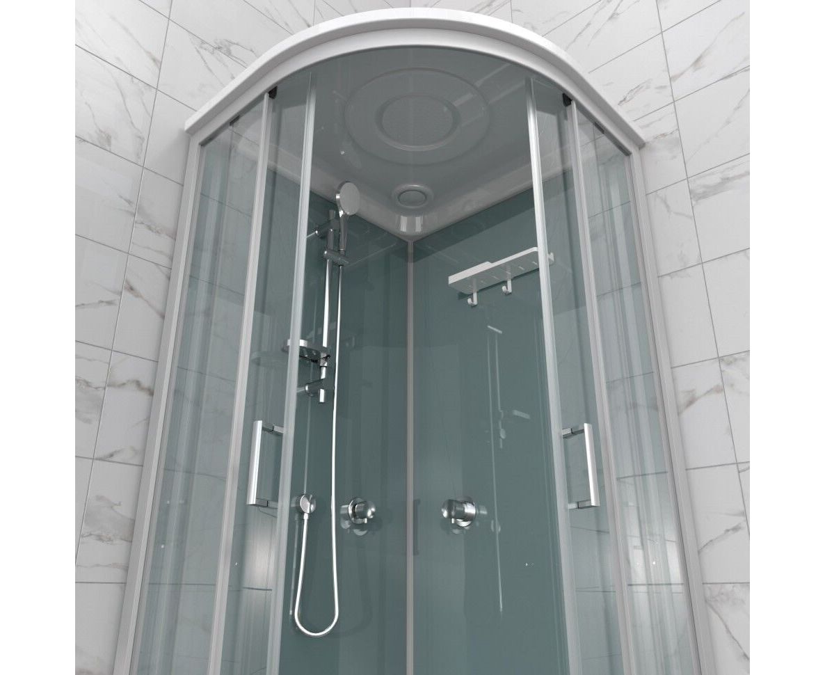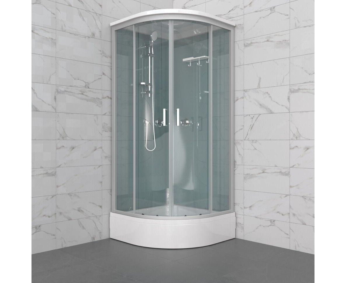 Triton Прайм-Сатин М3 - душевая кабина в форме полукруга (90х90х228 см). Средний поддон (высота 25,5 см, глубина 14,5 см) с сифоном 50 мм. Прозрачное закалённое стекло 4 мм, две раздвижные двери на роликах скольжения, ширина проёма 51 см. Алюминиевый профиль цвета сатин, радиус кабины - 556 мм. Максимальная нагрузка на поддон - 350 кг.