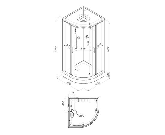 БрендTriton Ширина, см90 Глубина, см90 Высота, см220 ФормаЧетверть круга ОриентацияУниверсальная Вид поддонаНизкий Количество секций двери2 СтранаРоссия Гарантия5 лет