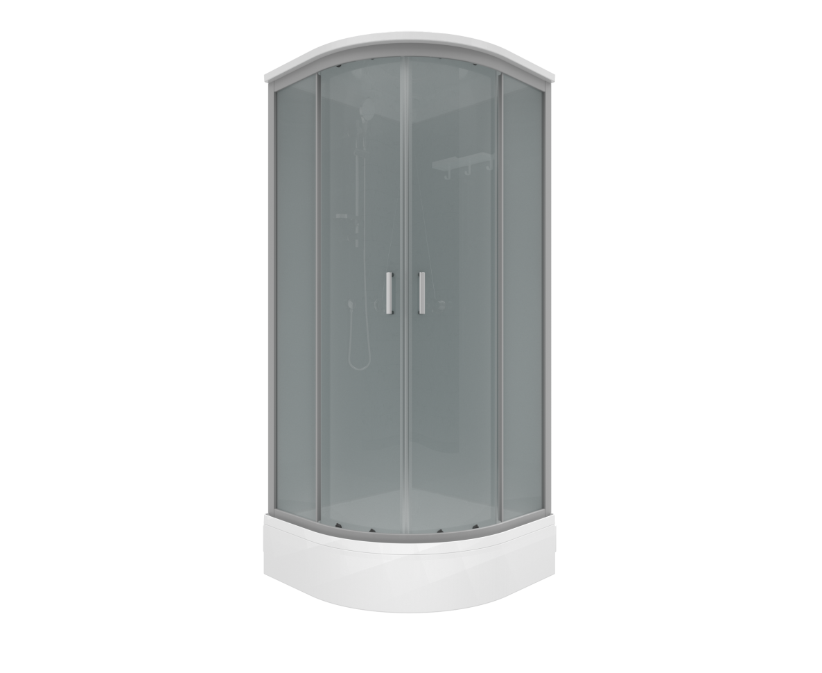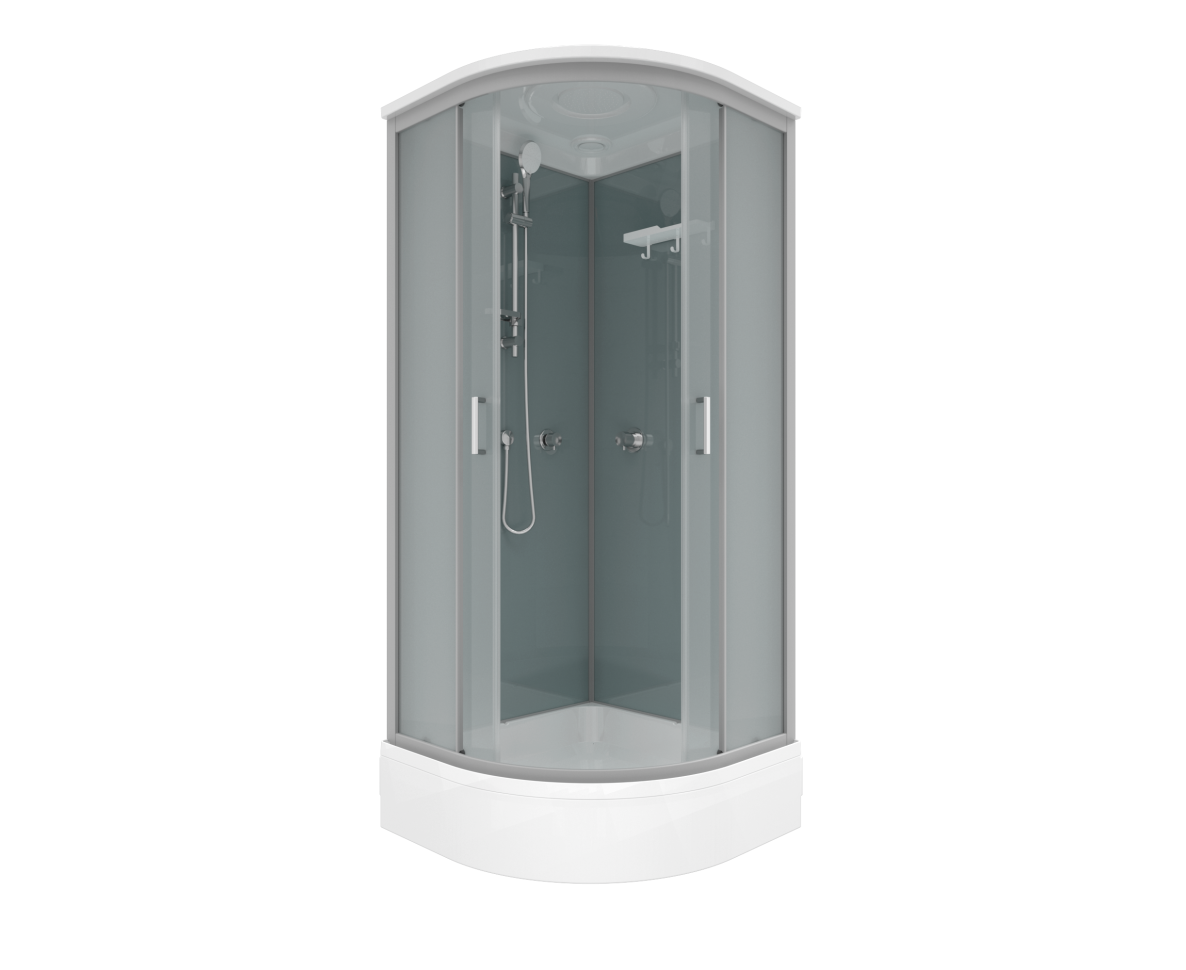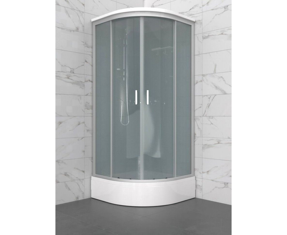 Triton Прайм-Сатин-Вельвет М3 - душевая кабина в форме полукруга (90х90х228 см). Средний поддон (высота 25,5 см, глубина 14,5 см) с сифоном 50 мм. Закалённое стекло 4 мм с рисунком «Вельвет», две раздвижные двери на роликах скольжения, ширина проёма 51 см. Алюминиевый профиль цвета сатин, радиус кабины - 556 мм. Максимальная нагрузка на поддон - 350 кг.