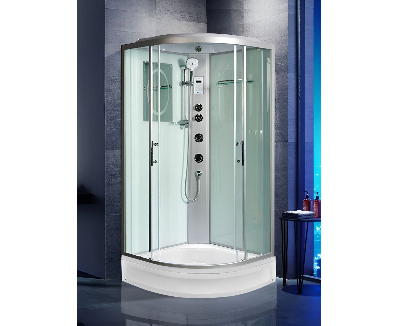 Конструкция дверей: раздвижная. Цвет передних стекол: прозрачный. Цвет задних стенок: белый. Гидромассаж: есть. Наличие крыши: есть.