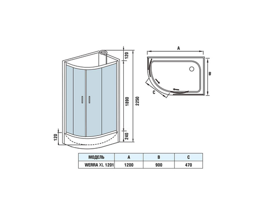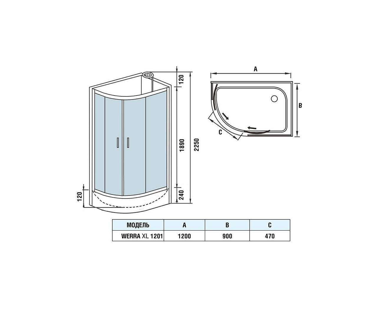 Характеристики Душевая кабина WeltWasser WERRA XL 1201 R 120х90