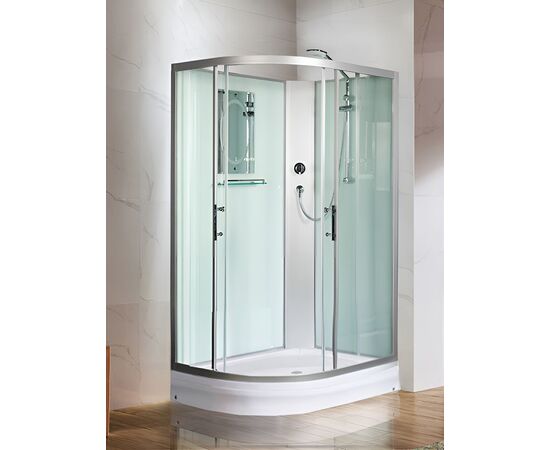 Конструкция дверей: раздвижная. Цвет передних стекол: прозрачный. Цвет задних стенок: белый. Гидромассаж: нет. Наличие крыши: нет.