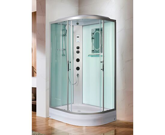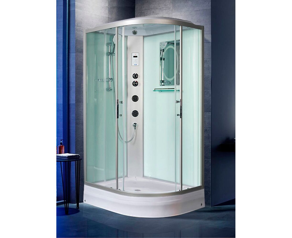 Конструкция дверей: раздвижная. Цвет передних стекол: прозрачный. Цвет задних стенок: белый. Гидромассаж: есть. Наличие крыши: есть.