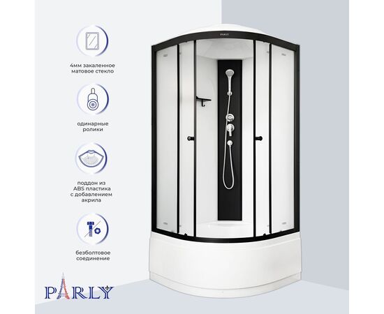- Современный дизайн. Модельный ряд кабин PARLY представлен в различных стилях, конфигурациях и цветах, а также с различными формами поддонов. Поэтому можно индивидуально подобрать кабину практически для любого дизайнерского решения. Презентабельный вид кабинам придают закаленные стекла, которые способствуют надежности и не боятся химических средств, что позволяет дольше сохранить их внешнюю привлекательность.