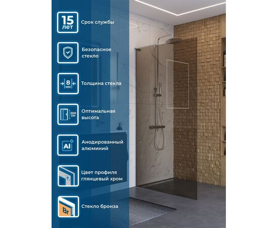 Душевая перегородка BelBagno UNO-L-1-TB-100-BR-Cr