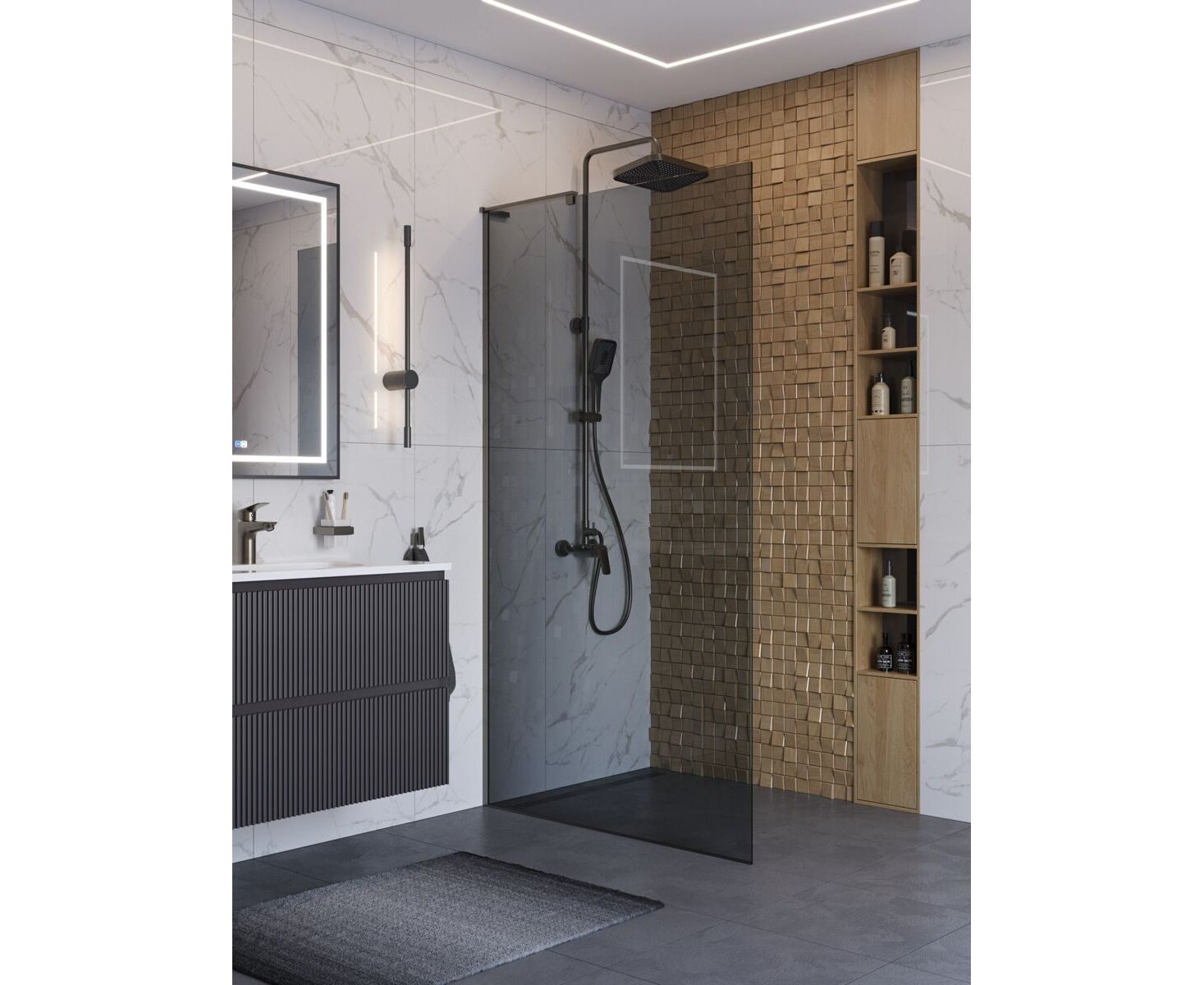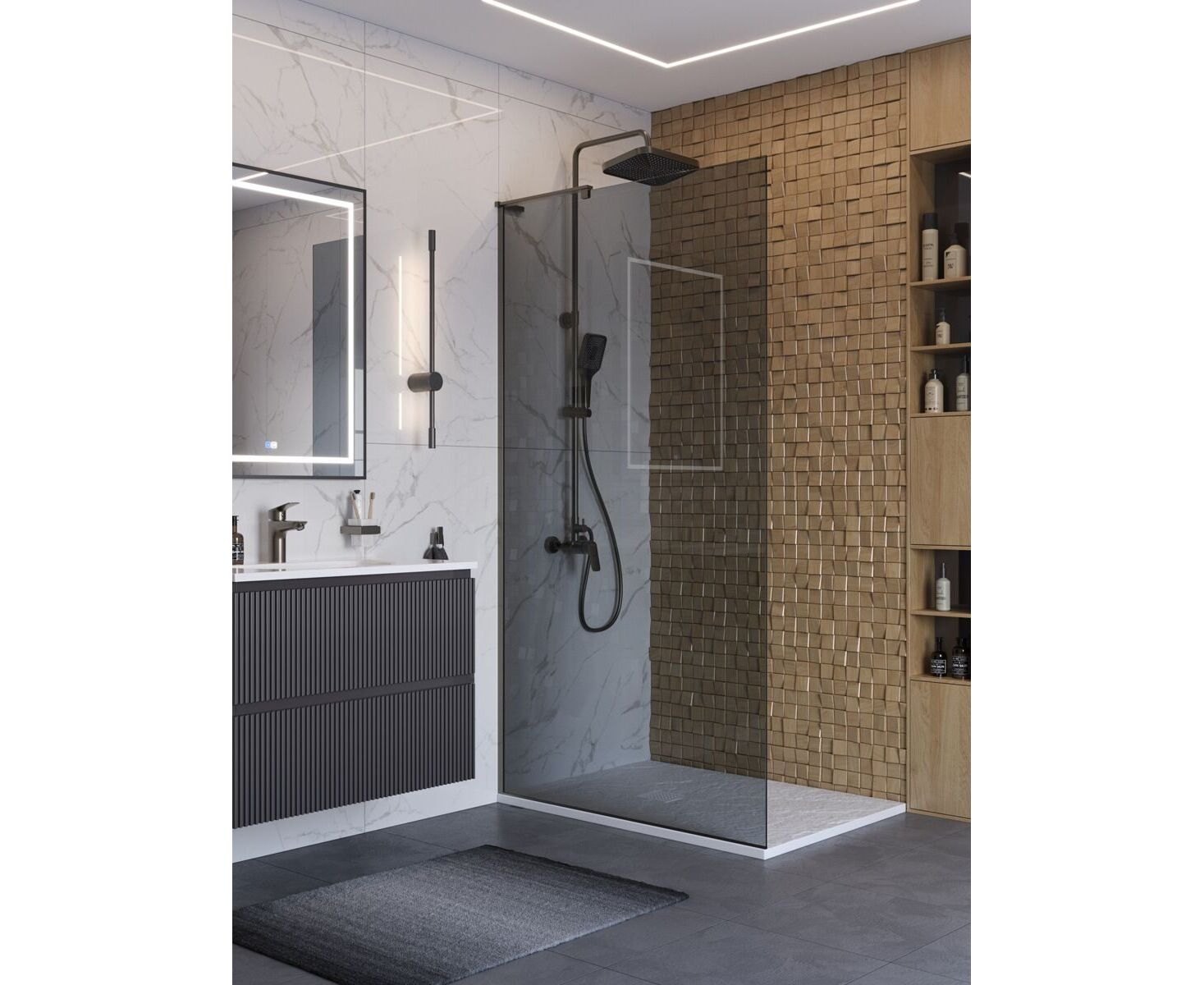 Широкий диапазон размеров от 60 до 110 см с шагом в 10 см позволяет найти идеальное решение для ванных комнат любого метража. Высота перегородок составляет целых 200 см — как в премиальных коллекциях.