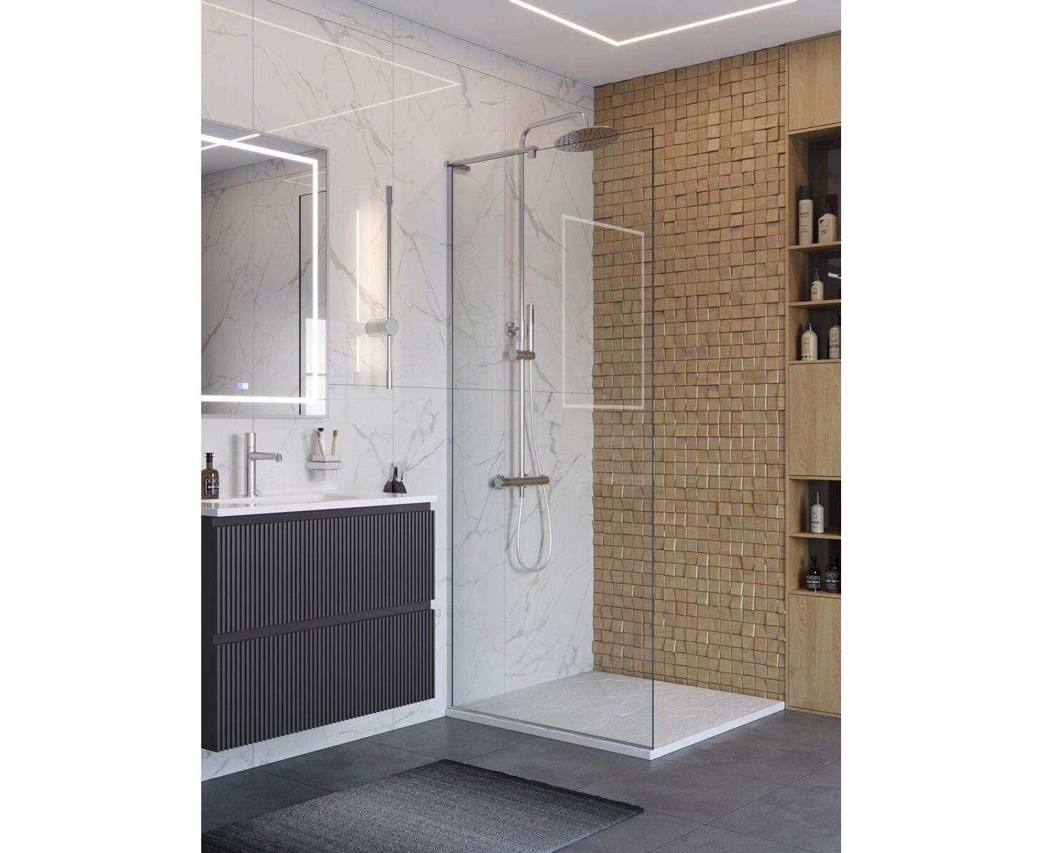 Широкий диапазон размеров от 60 до 110 см с шагом в 10 см позволяет найти идеальное решение для ванных комнат любого метража. Высота перегородок составляет целых 200 см — как в премиальных коллекциях.