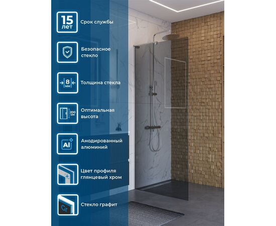 Душевая перегородка BelBagno UNO-L-1-TB-90-GR-Cr
