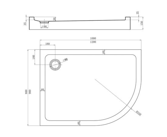 Характеристики Душевой поддон Veconi Tezeo Acrylic TZ-55L 1000x800x150 акрил белый
