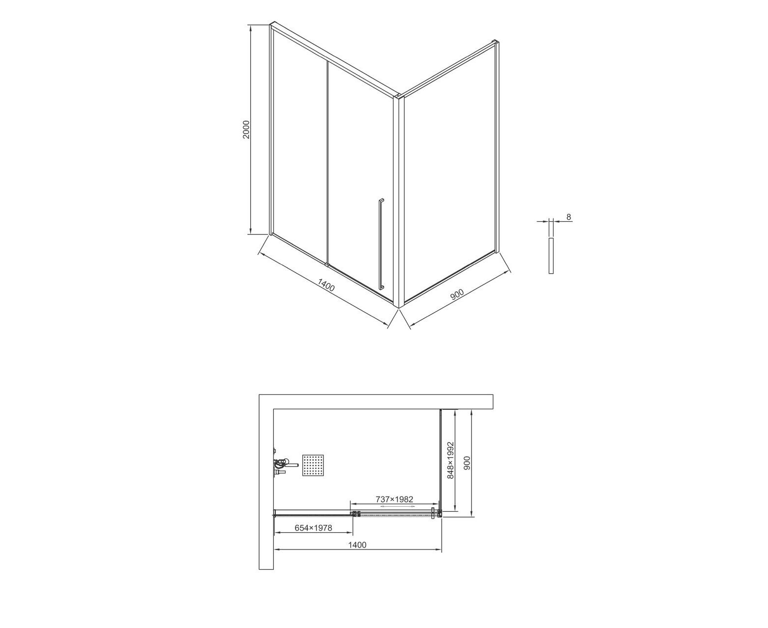 Характеристики Душевая дверь Timo TDSS-140/17C-8R 1400х2000 профиль матовое золото + торцевое стекло TSS-900/17C-8 900х2000