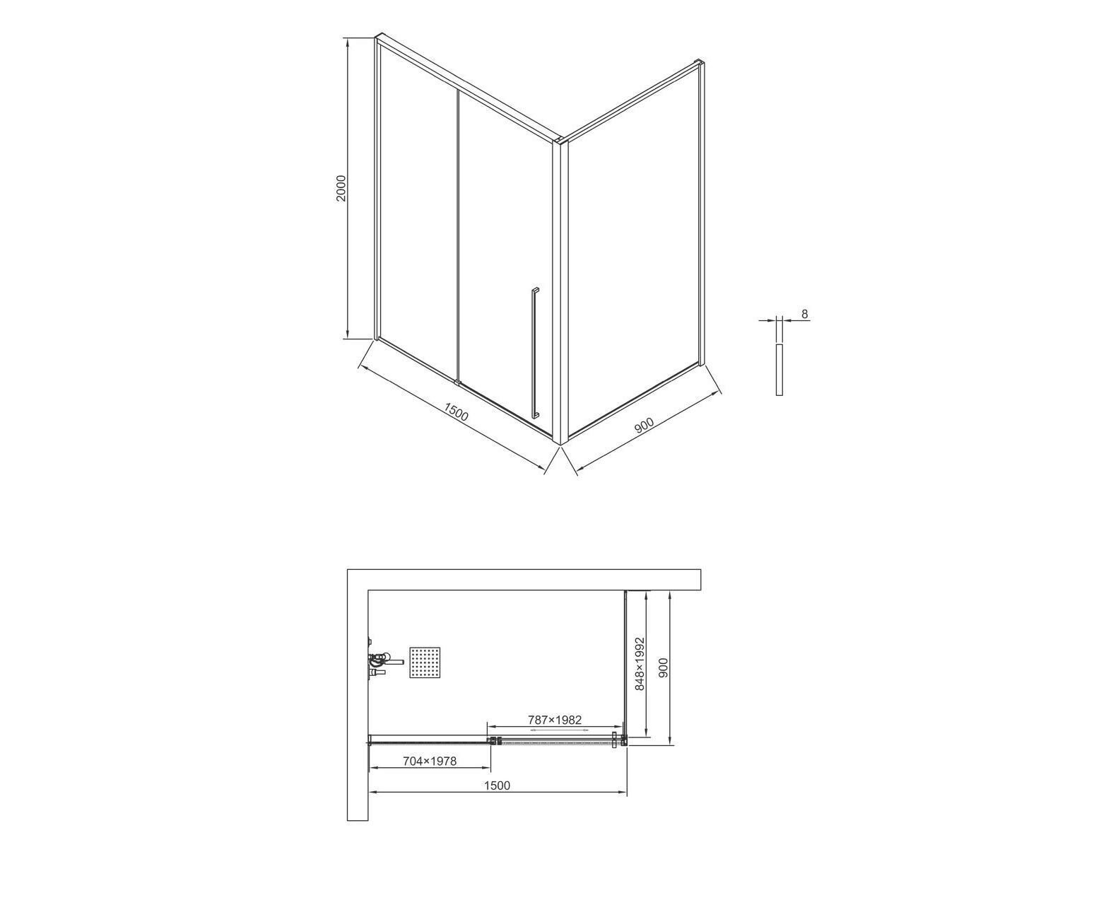 Характеристики Душевая дверь Timo TDSS-150/13C-8L 1500х2000 профиль никель + торцевое стекло TSS-900/13C-8 900х2000