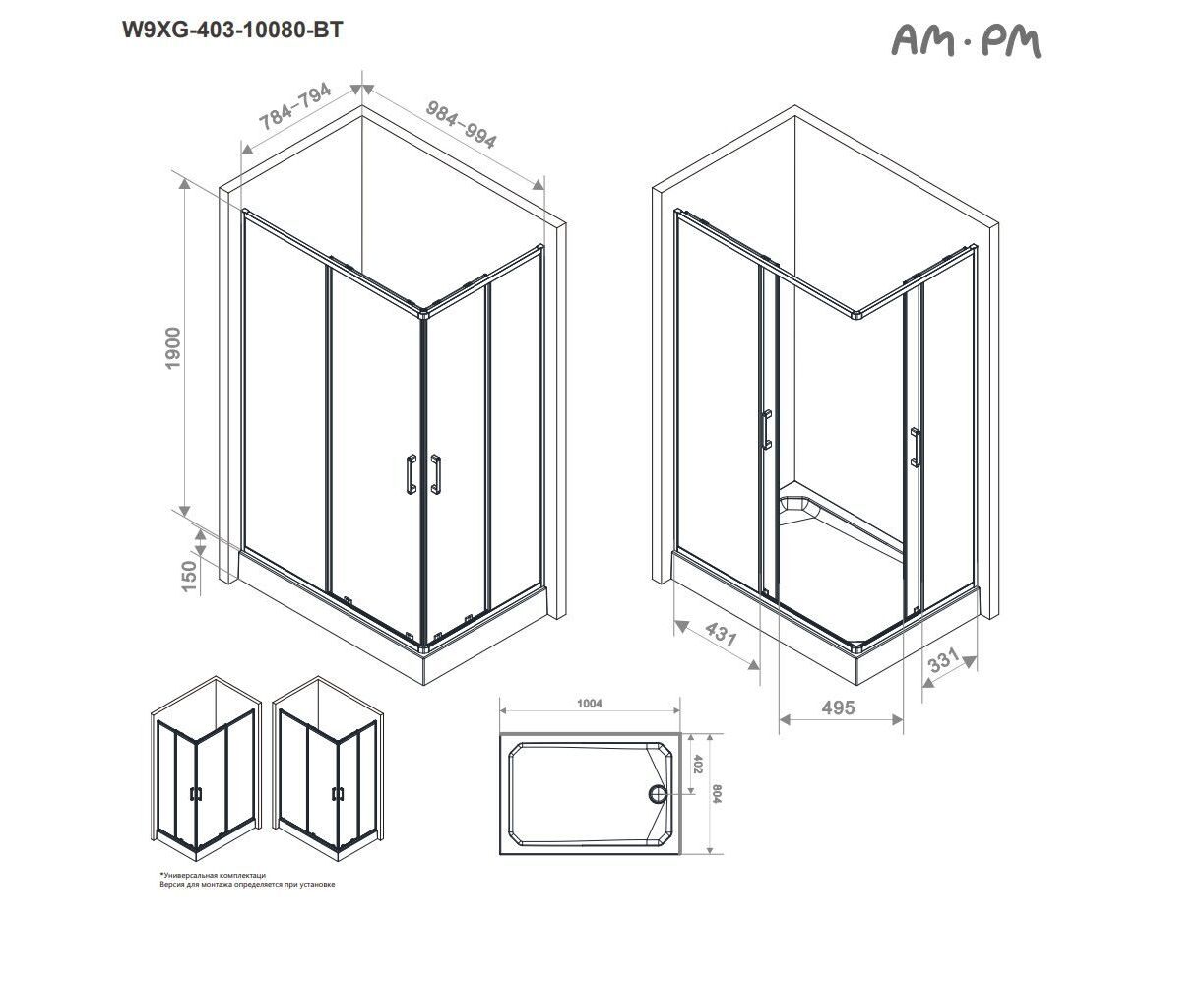 Характеристики Душевое ограждение AM.PM Above W9XG-403-10080-BT 100х80 см без поддона