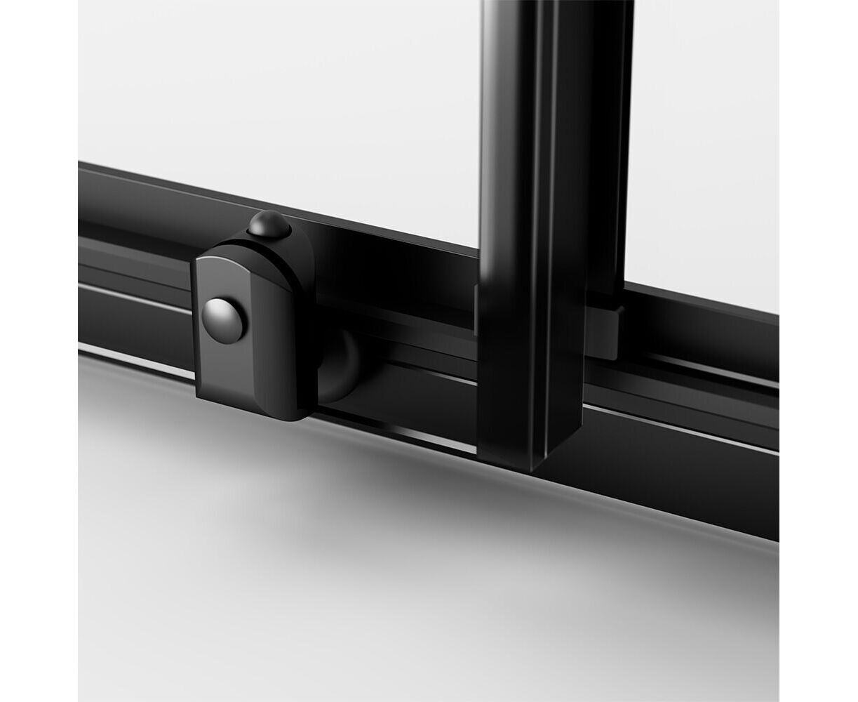 Ограждение имеет сверхпрочные закаленные стёкла. Толщина фиксированных стекол составляет 4 мм, двери имеют увеличенную толщину 5 мм. Невероятно плавное и легкое открывание двери благодаря двойным усиленным роликам из ABS-пластика. Нижние ролики обладают функцией быстрого снятия для самой лёгкой уборки. Магнитные уплотнители дверей делают ограждение полностью герметичным и предотвращают попадание воды за пределы душевой зоны.