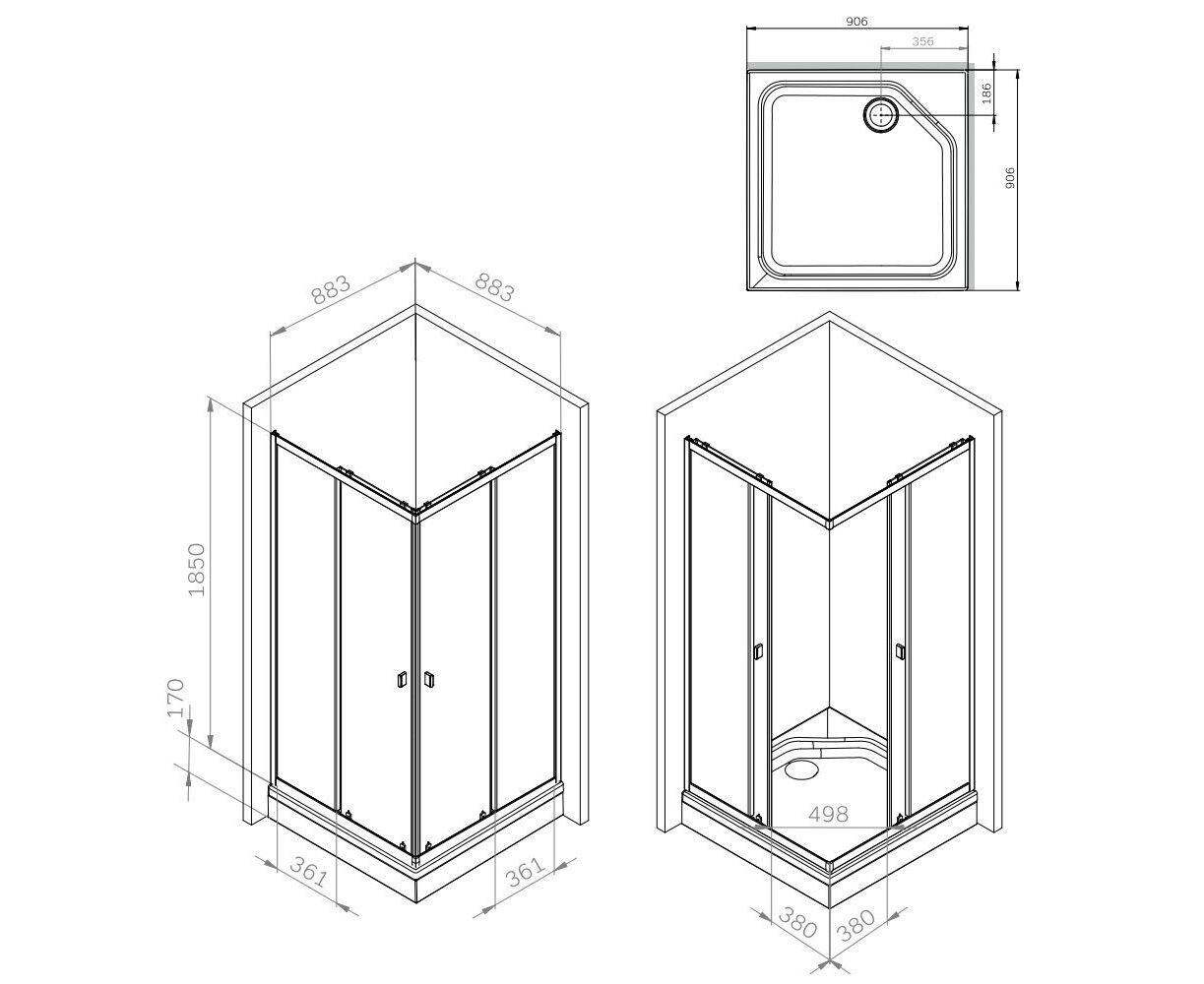 Параметры модели 90x90 сантиметров образуют квадратную форму. Высота ограждения достигает 185 сантиметров. Идеальный размер для комфортного пользования. Подходит даже для самых высоких.