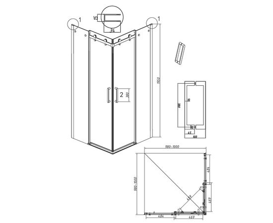 БрендGrossman Ширина, см100 Глубина, см100 Высота, см195 ФормаКвадратная ОриентацияУниверсальная Поддон в комплектеНет СтранаГермания Гарантия10 лет
