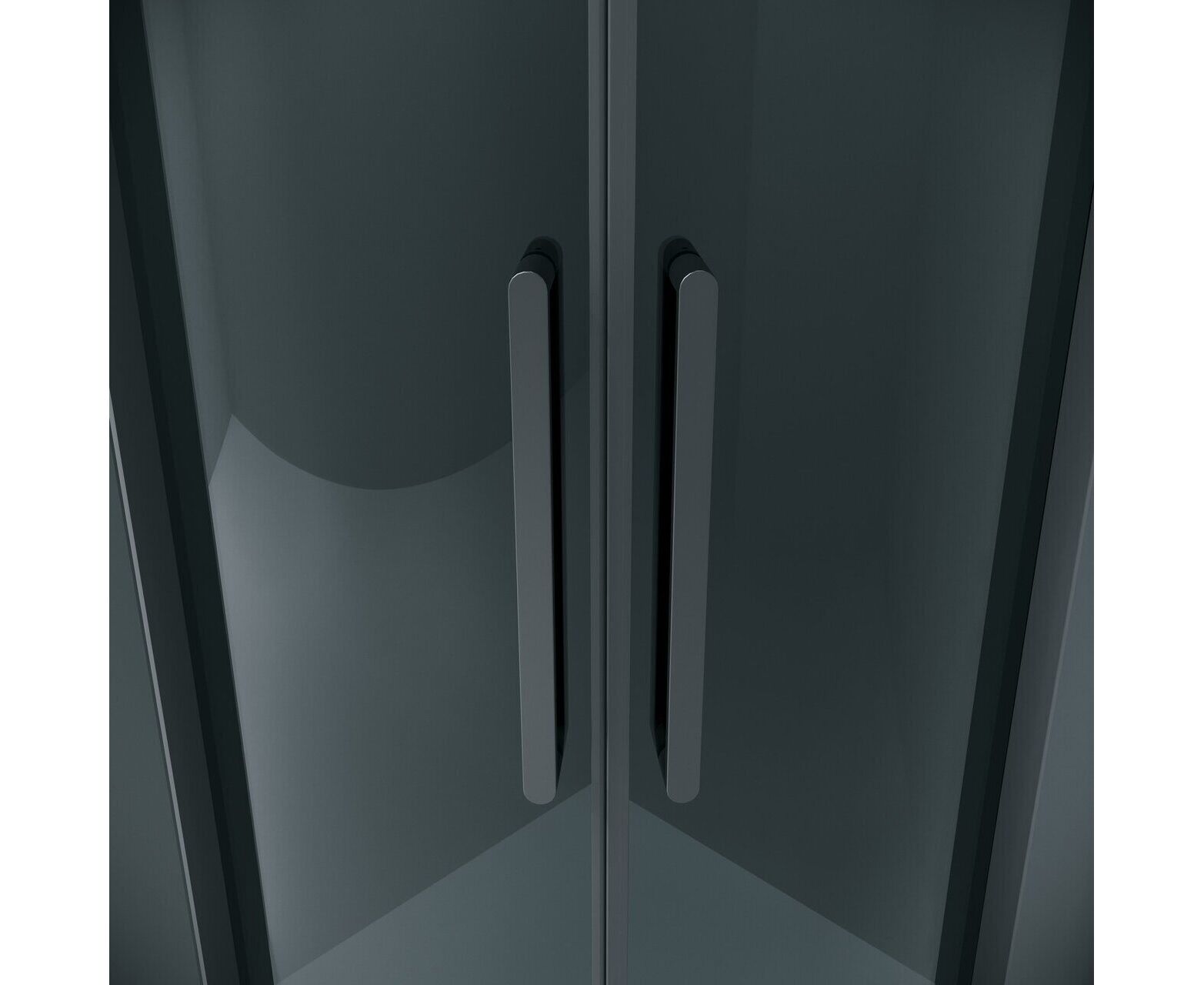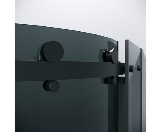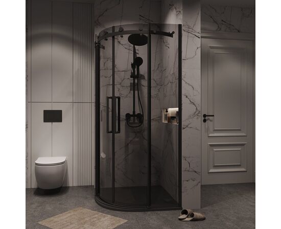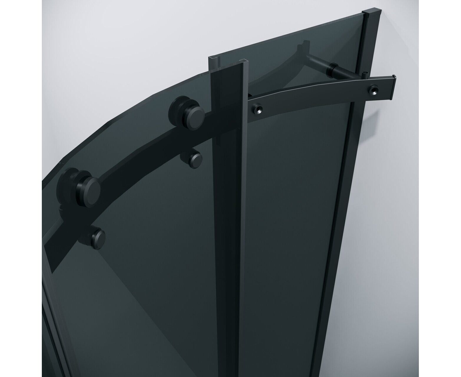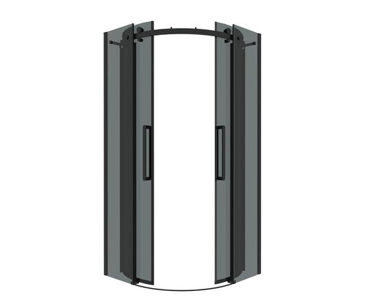 Душевое ограждение Grossman Classic 301.K33.04.1010.21.10 100х100х195 см полукруг раздвижная черный матовый стекло тонированное сделает любой интерьер ванной особенным. Форма уголка четверть круга, габаритные размеры 100х100х195 см. В основе конструкции лежит алюминиевый профиль в цвете «черный матовый» и тонированное закаленное стекло толщиной 8 мм. Механизм дверей - раздвижной.