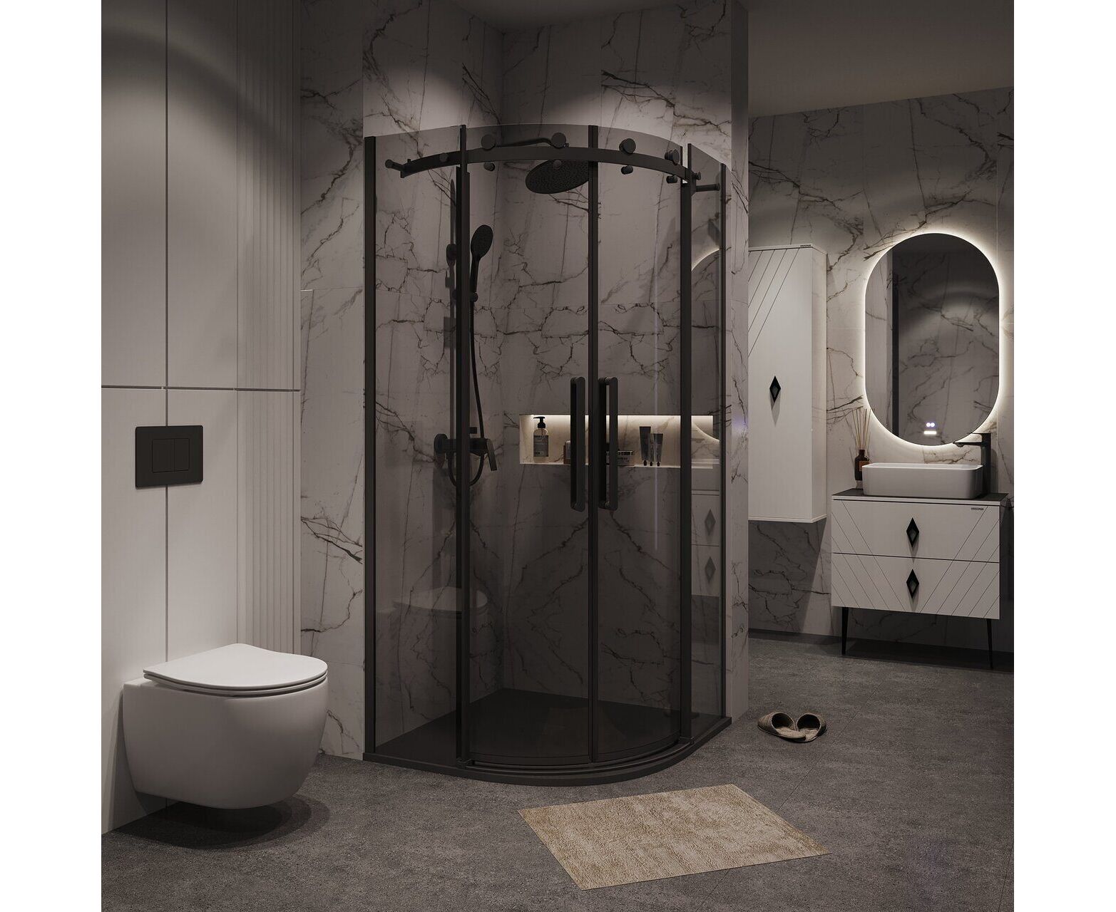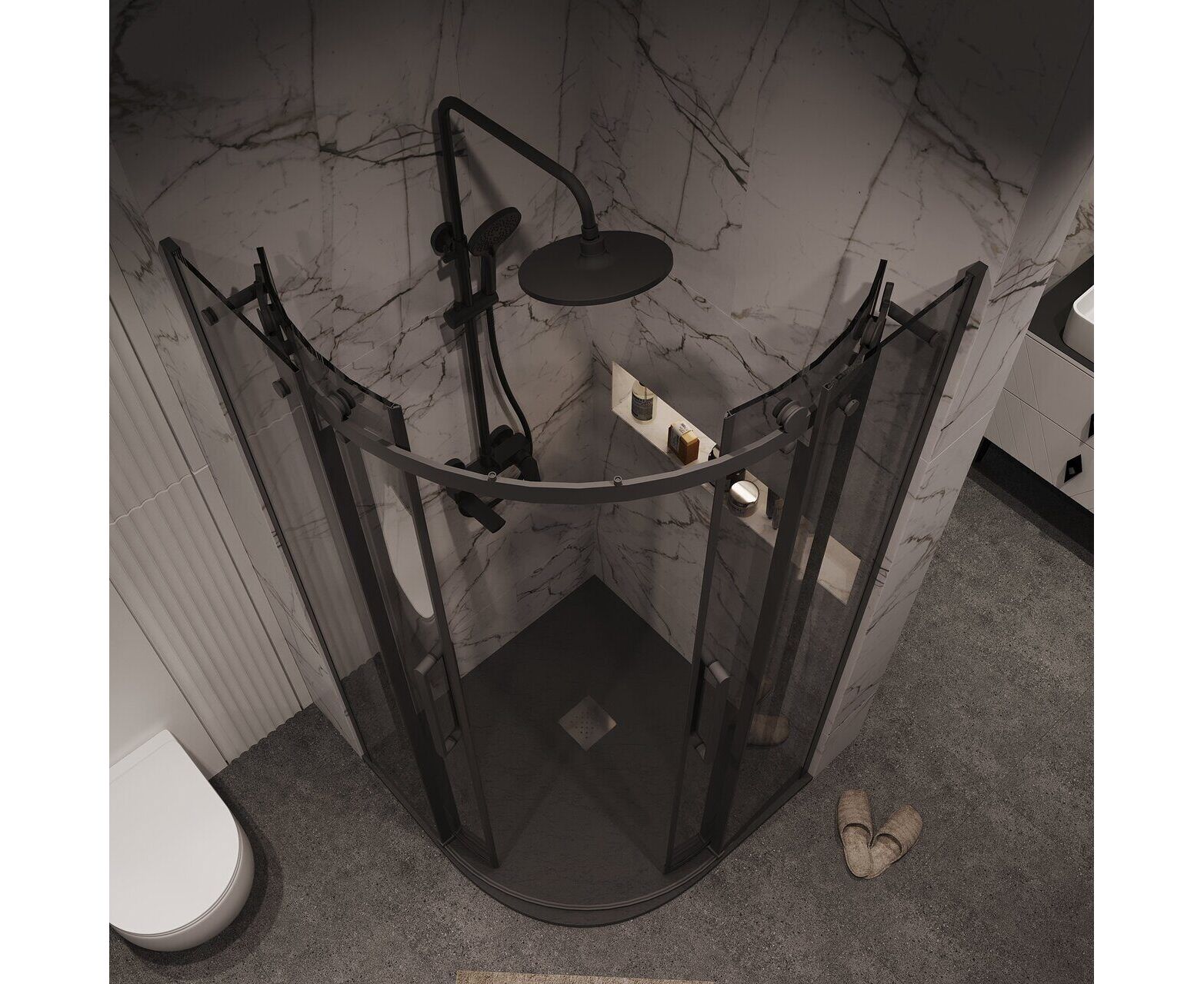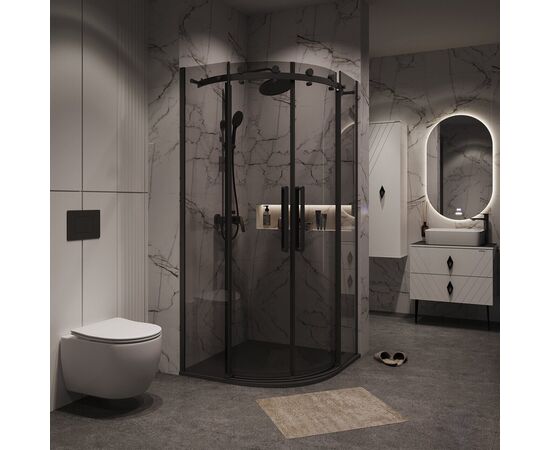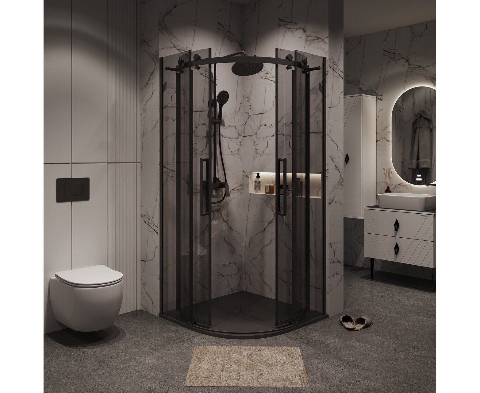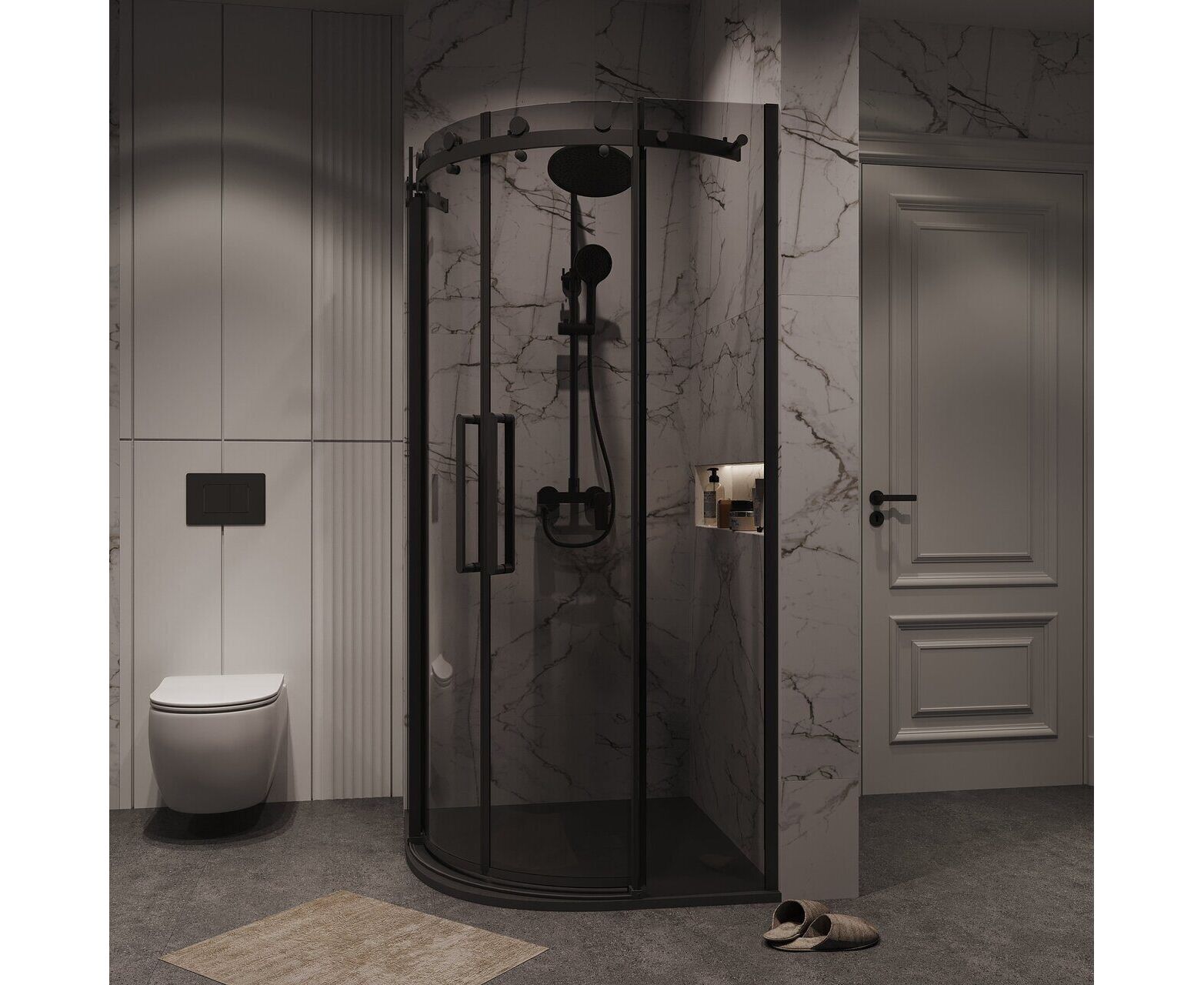 Душевое ограждение Grossman Classic 301.K33.04.1010.21.10 100х100х195 см полукруг раздвижная черный матовый стекло тонированное