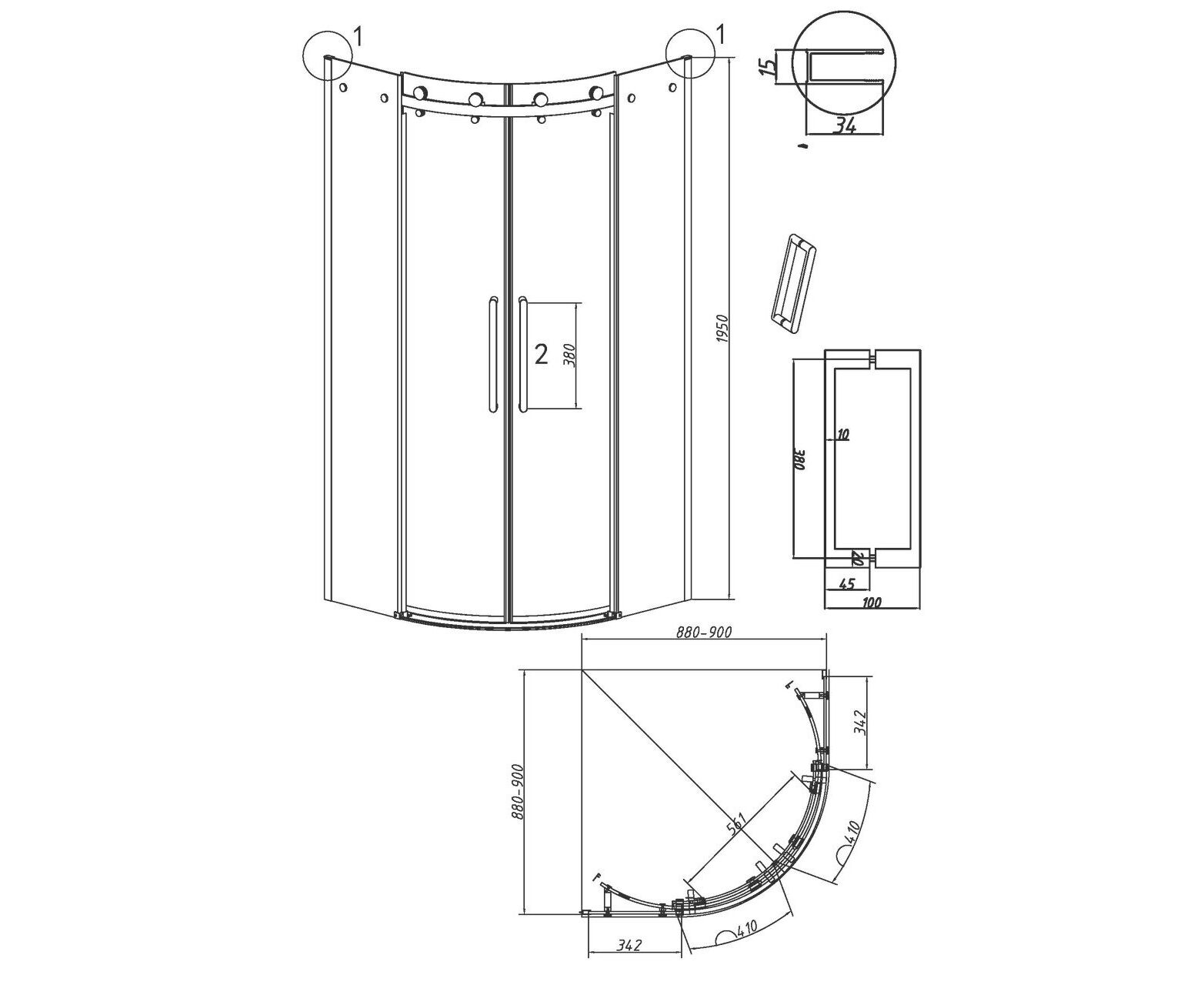 Характеристики Душевое ограждение Grossman Classic 301.K33.04.1010.21.10 100х100х195 см полукруг раздвижная черный матовый стекло тонированное