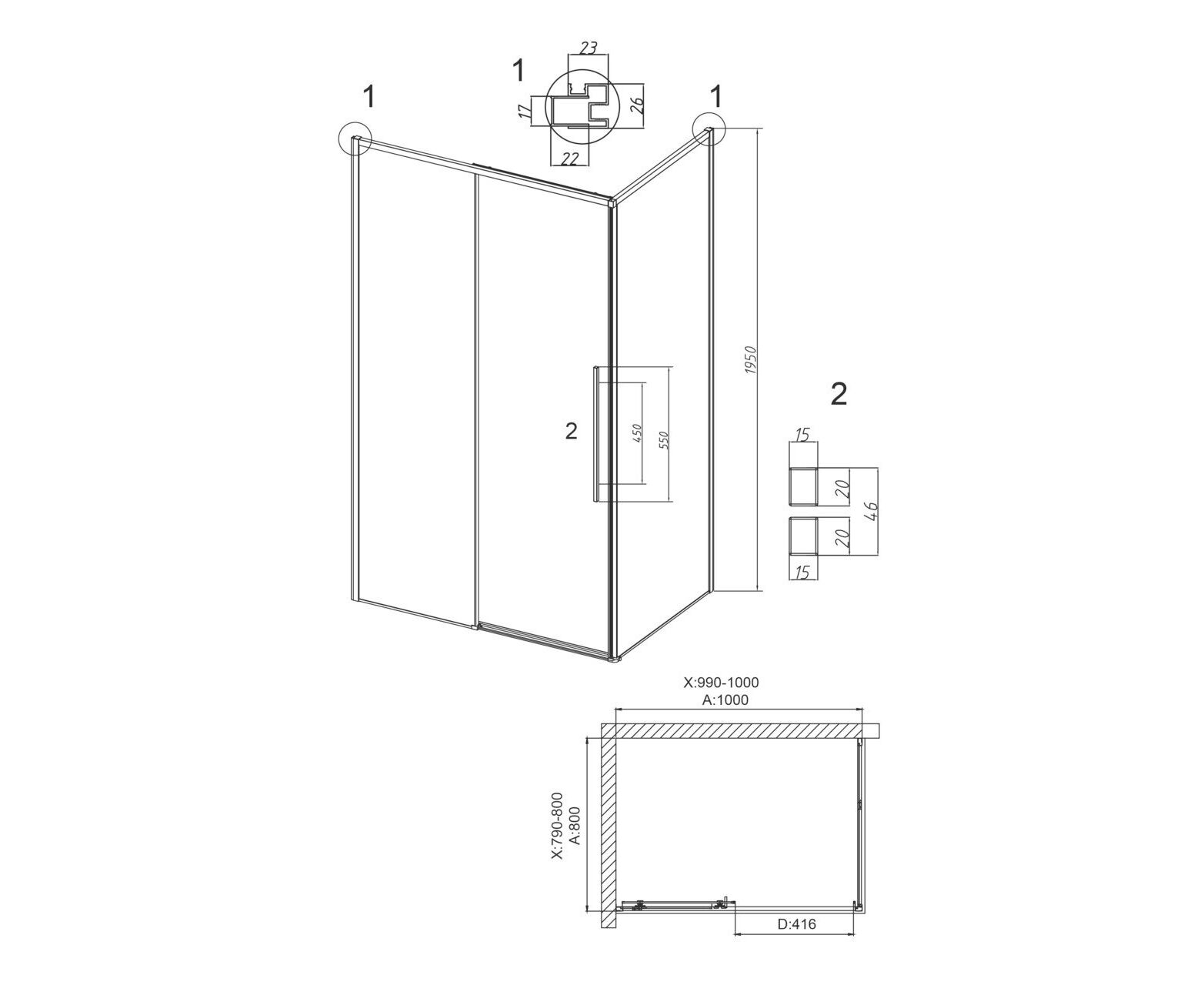 Характеристики Душевое ограждение Grossman Galaxy 120.K33.01.1080.21.02 100х80х195 см черный матовый стекло шиншилла