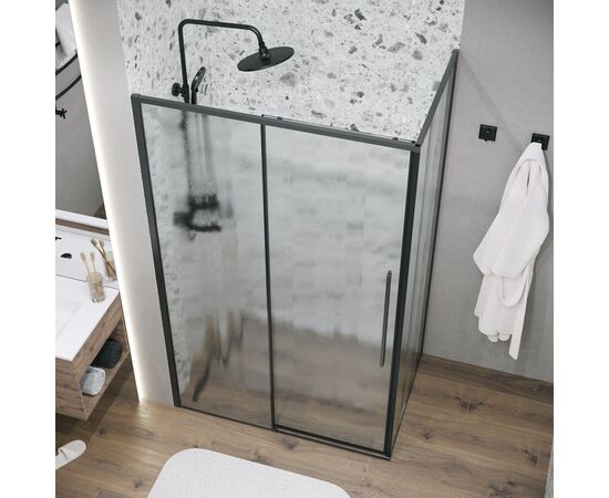 Душевое ограждение Grossman Galaxy 120.K33.01.1080.21.02 100х80х195 см черный матовый стекло шиншилла сделает любой интерьер ванной особенным. Форма уголка прямоугольная, габаритные размеры 100х80х195 см. В основе конструкции лежит алюминиевый профиль в цвете «черный матовый» и матовое рифленое закаленное стекло толщиной 6 мм. Механизм дверей - раздвижной.