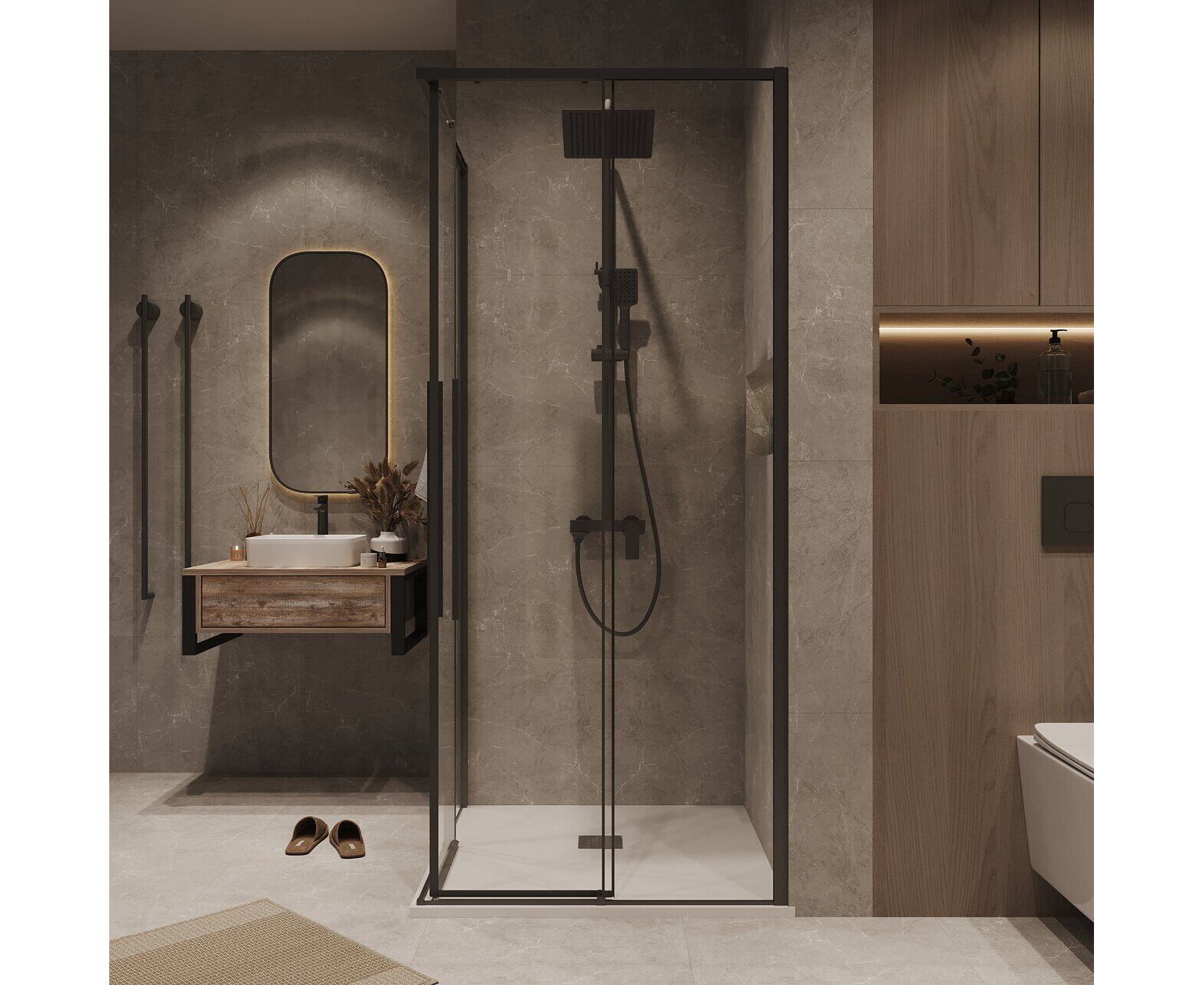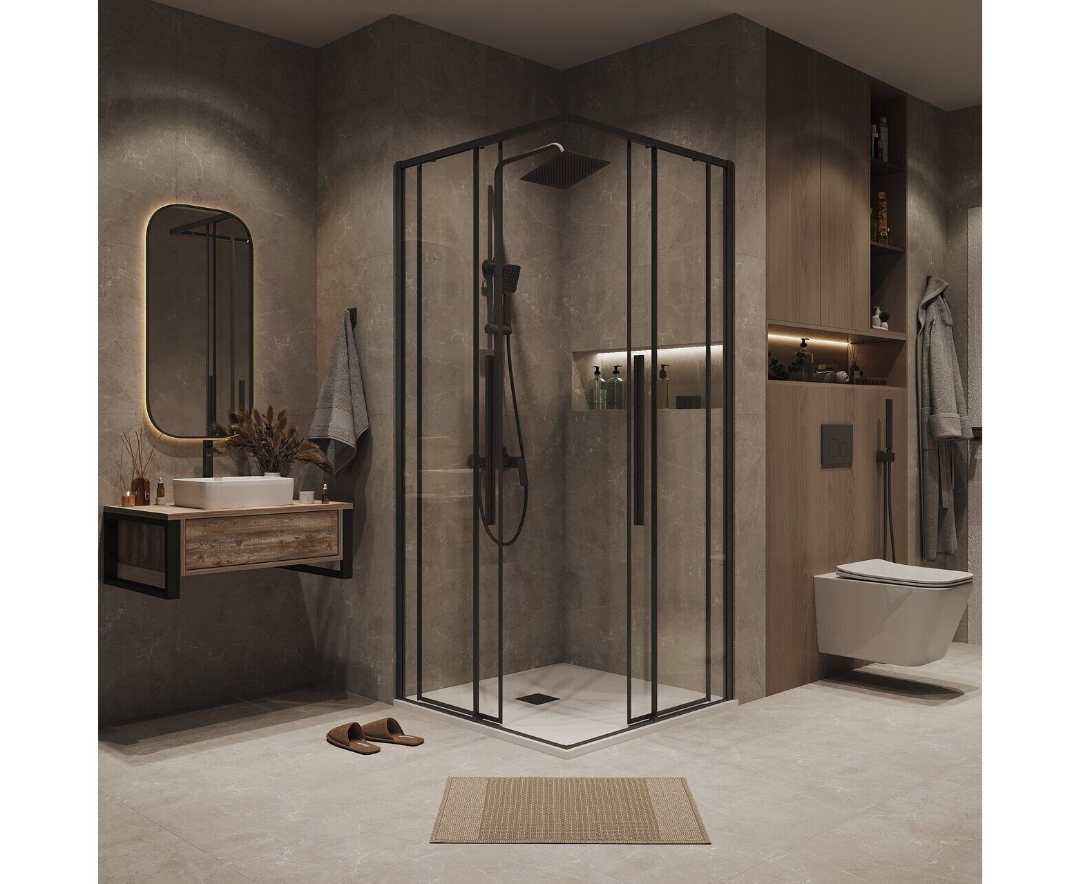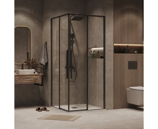 Душевое ограждение Grossman Galaxy 300.K33.01.1010.21.00 100х100х195 см сделает любой интерьер ванной особенным. Форма уголка квадратная, габаритные размеры 100х100х195 см. В основе конструкции лежит алюминиевый профиль в цвете «черный матовый» и прозрачное закаленное стекло толщиной 6 мм. Механизм дверей - раздвижной.