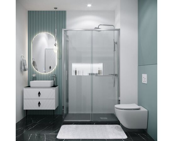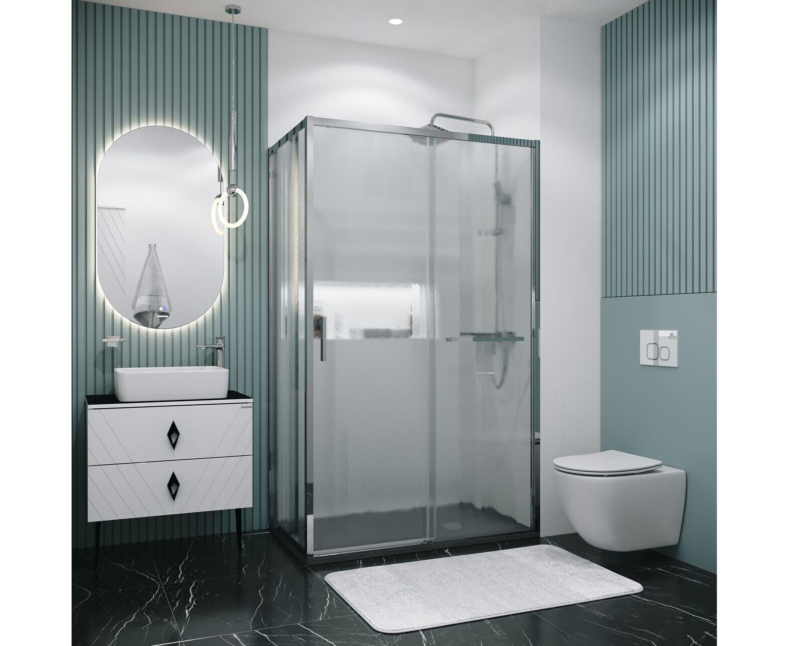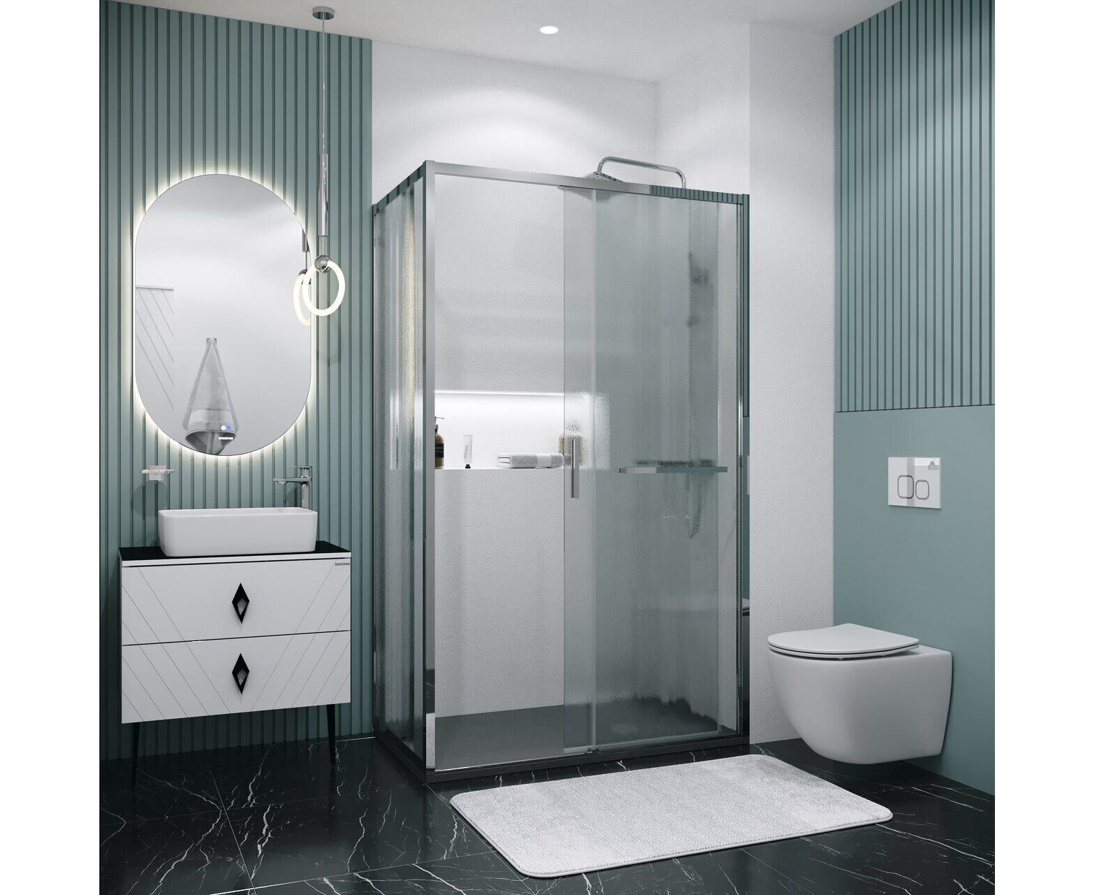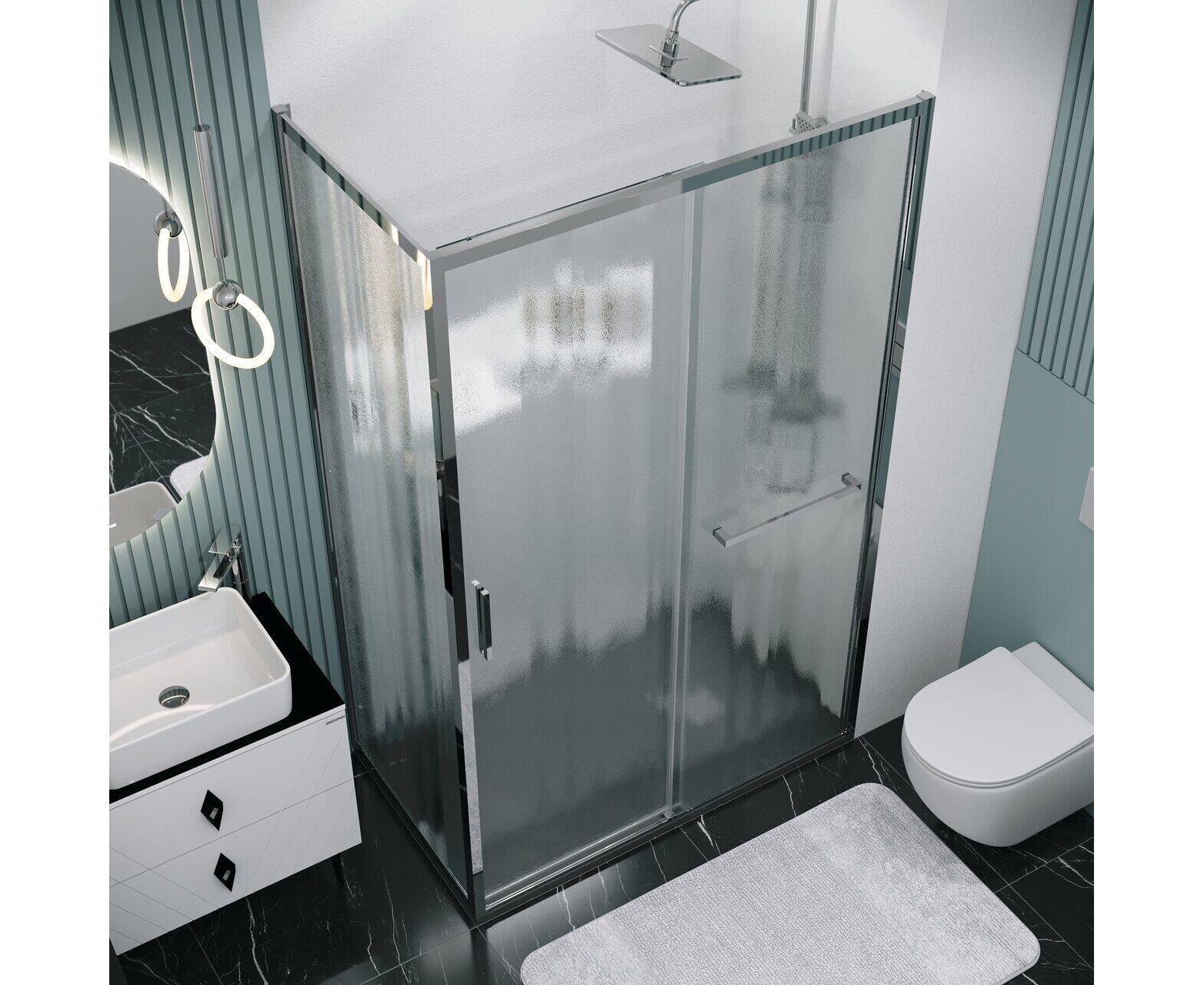 Душевое ограждение Grossman Style 120.K33.05.1380.10.02 130х80х195 см хром стекло шиншилла сделает любой интерьер ванной особенным. Форма уголка прямоугольная, габаритные размеры 130х80х195 см. В основе конструкции лежит алюминиевый профиль в цвете «хром» и матовое рифленое закаленное стекло толщиной 6 мм. Механизм дверей - раздвижной.