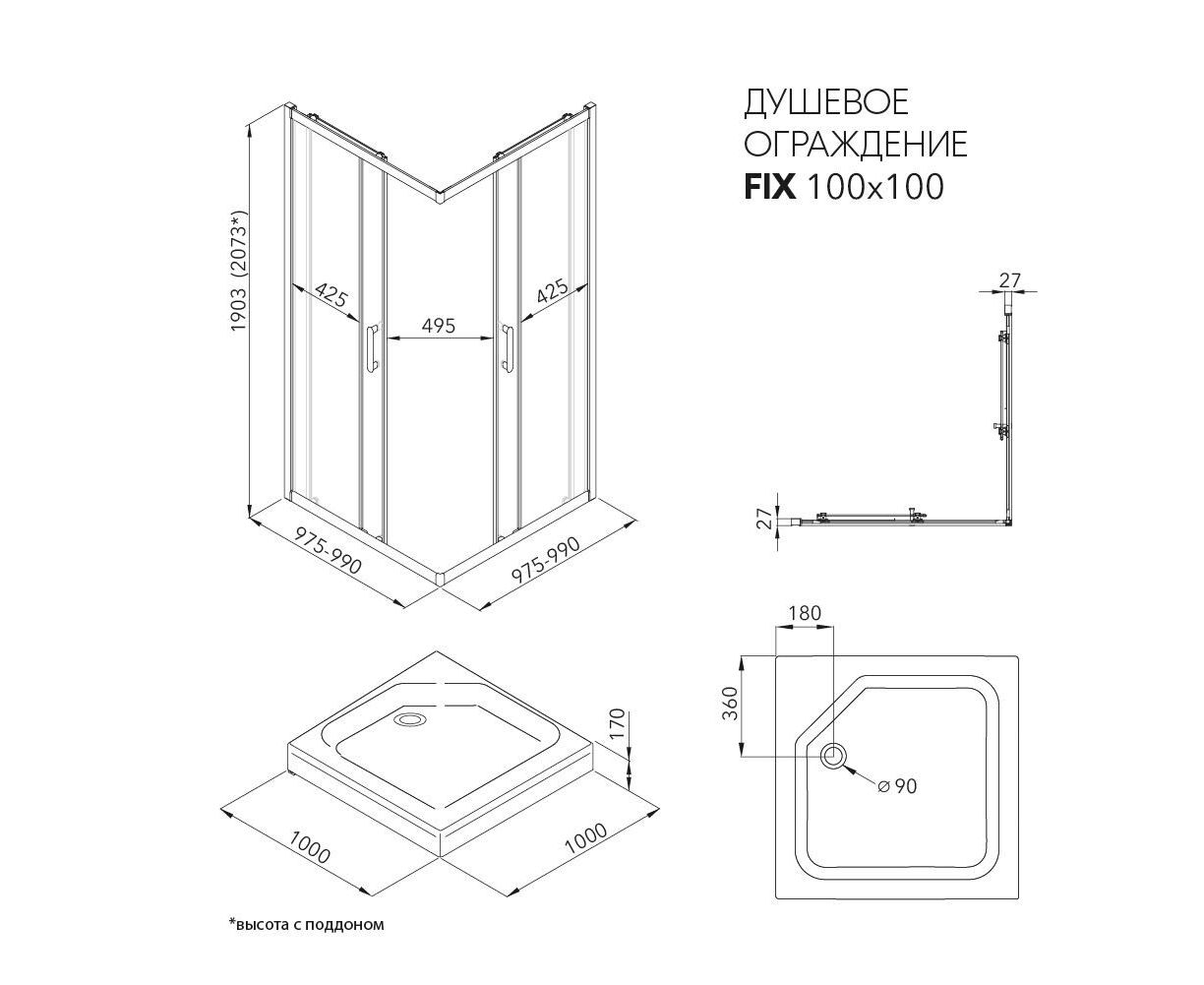 Характеристики Душевое ограждение Triton Фикс-Графит 100х100 квадрат
